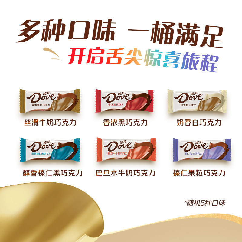 德芙巧克力6g什锦桶510g混合口味丝滑牛奶香浓黑巧办公室零食桶装