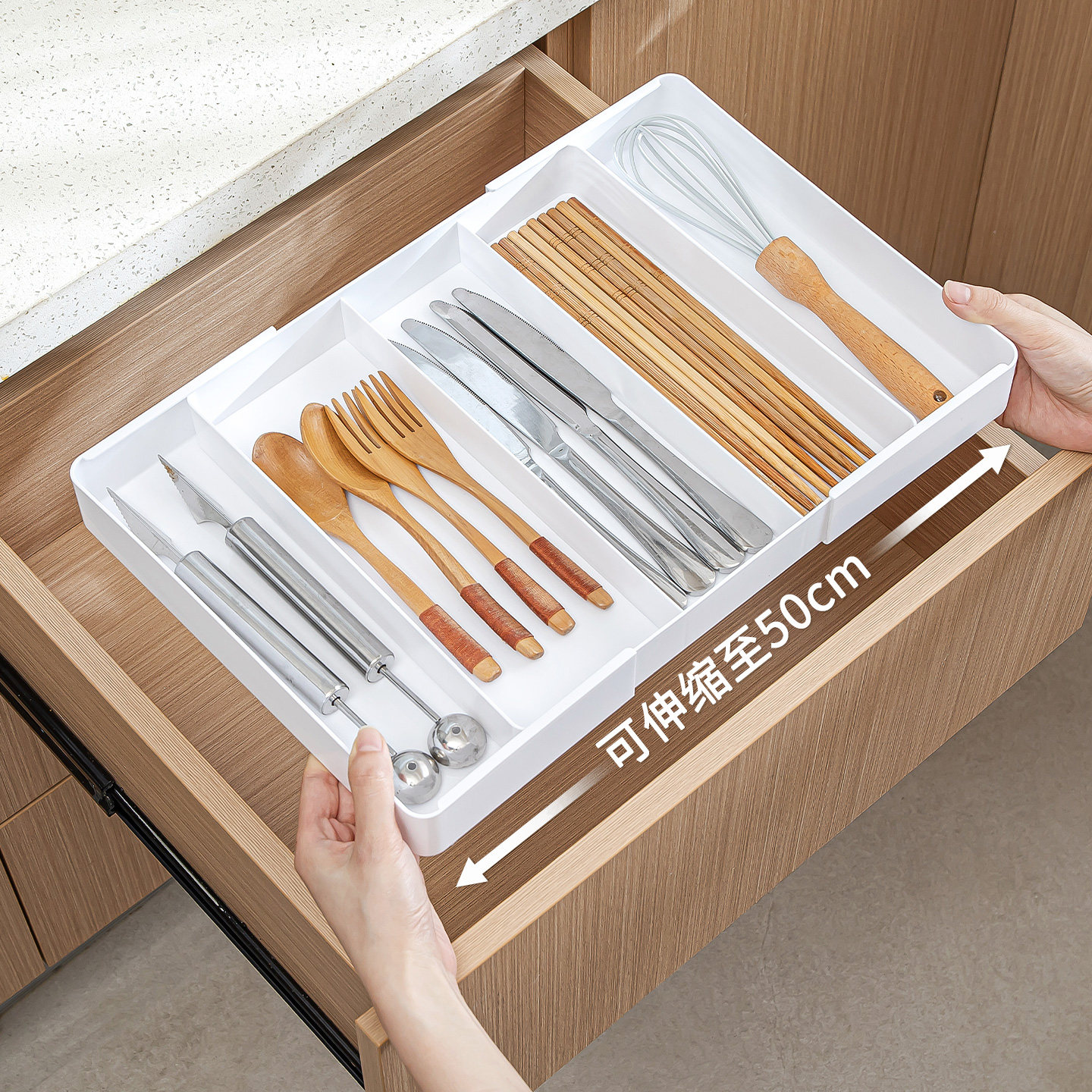 可伸缩抽屉分格收纳盒橱柜餐具筷子勺子内置储物盒分隔神器厨房