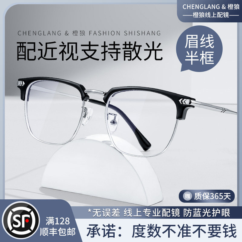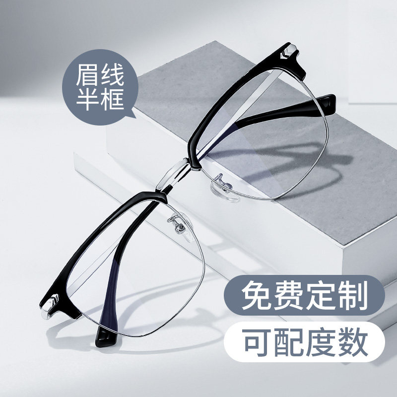 商务半框眼睛架定制成品光学镜可配度数近视框眼镜防蓝光 狂飙男士