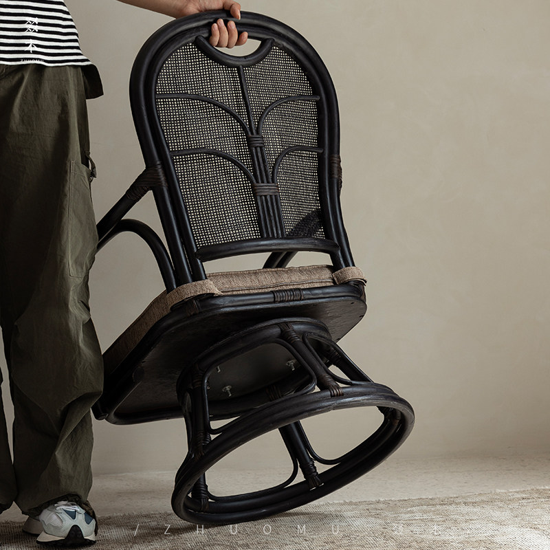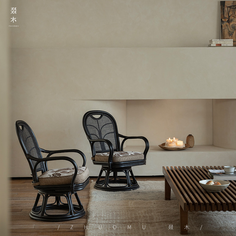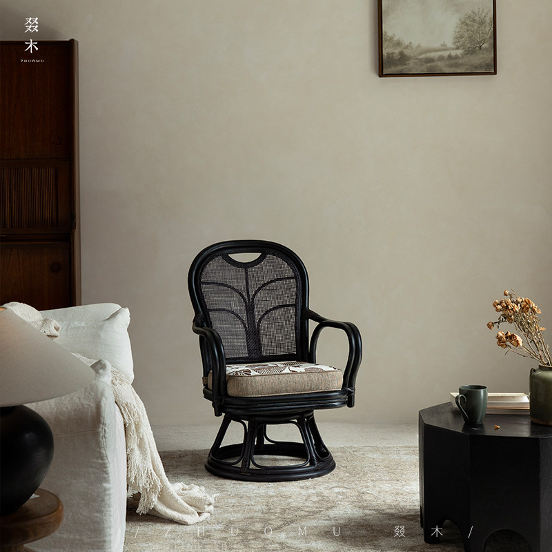 日式 藤编可旋转茶室休闲椅真藤客厅单人小沙发椅 东南亚藤艺 叕木