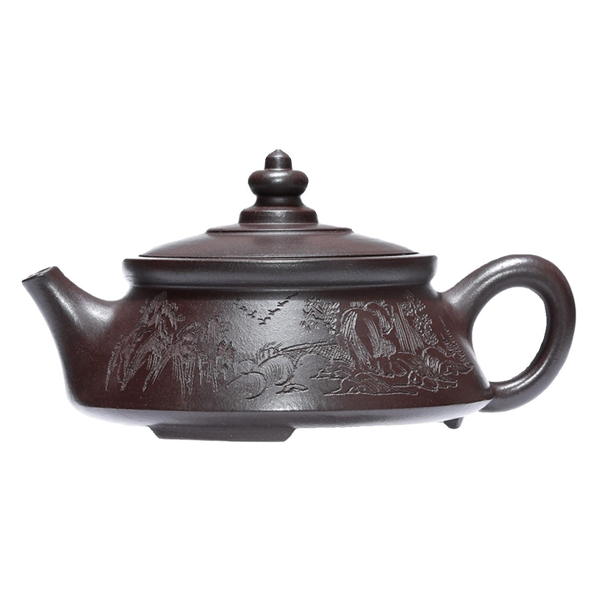 宜兴原矿手工刻绘紫泥步步高升壶230毫升家用茶具泡茶壶 紫砂壶