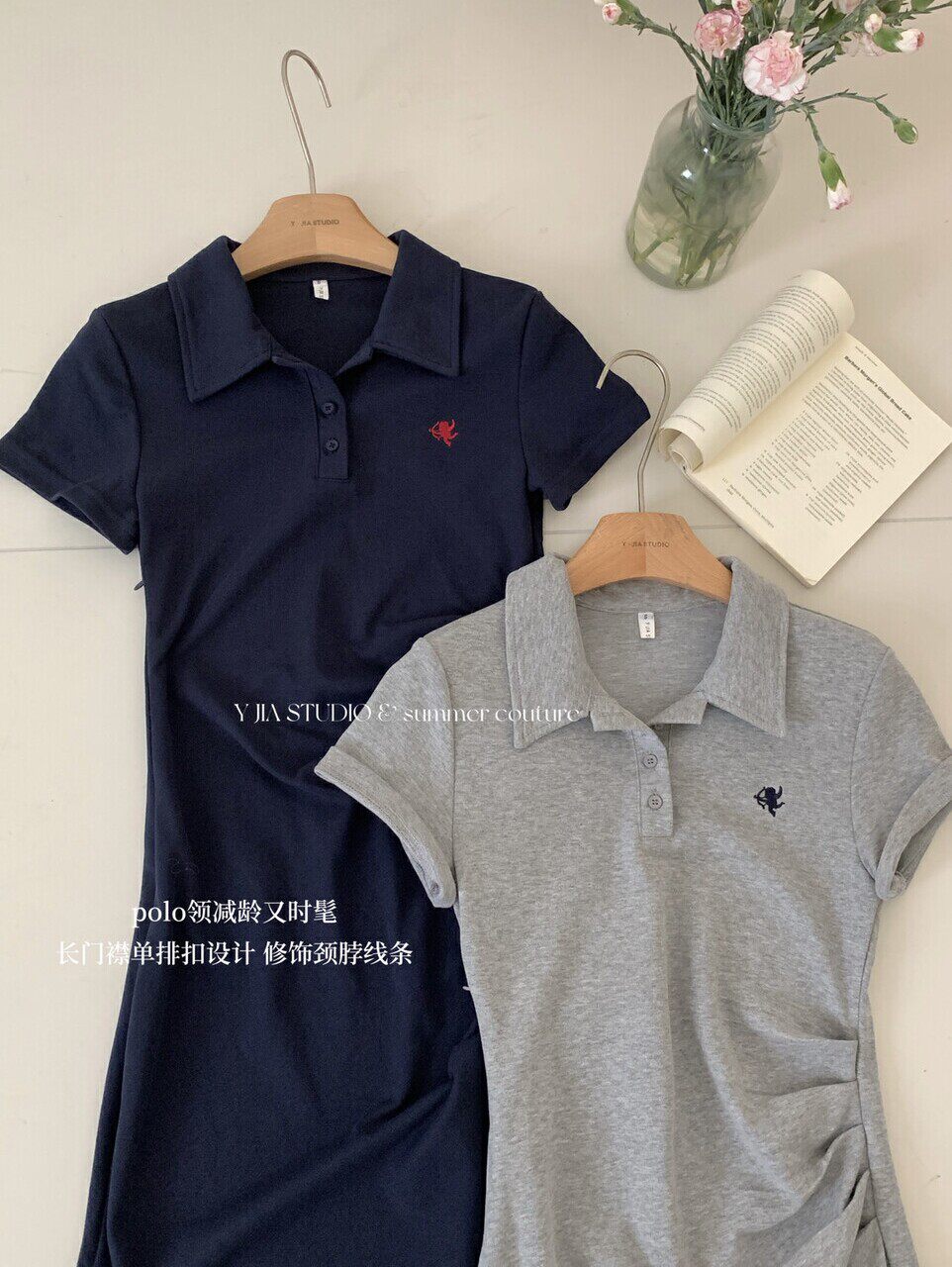 2025年夏季 气质减龄刺绣一侧褶皱polo领短袖 长款 连衣裙女夏 新款由