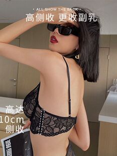 薄黑 好奇蜜斯无痕内衣女小胸聚拢深V显大性感U型美背低文胸罩套装