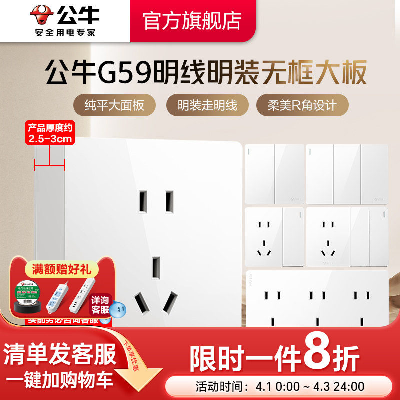 公牛旗舰明装 多孔插座G59白 插座开关空调16A插座五孔10A面板明装