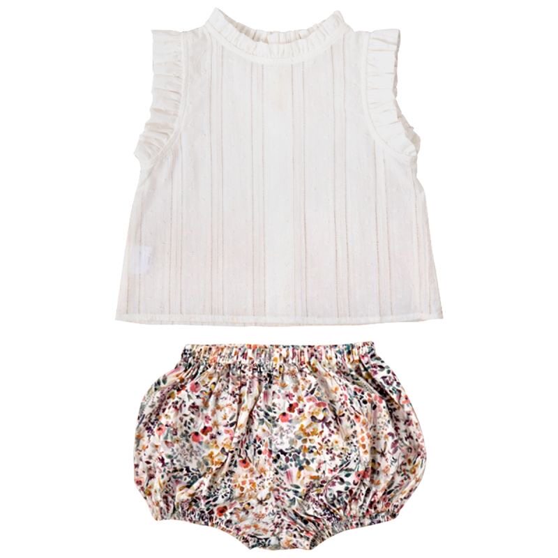 洋气短袖 女童夏季 两件套潮 碎花短裤 复古女宝宝花苞裤 套装 2026新款