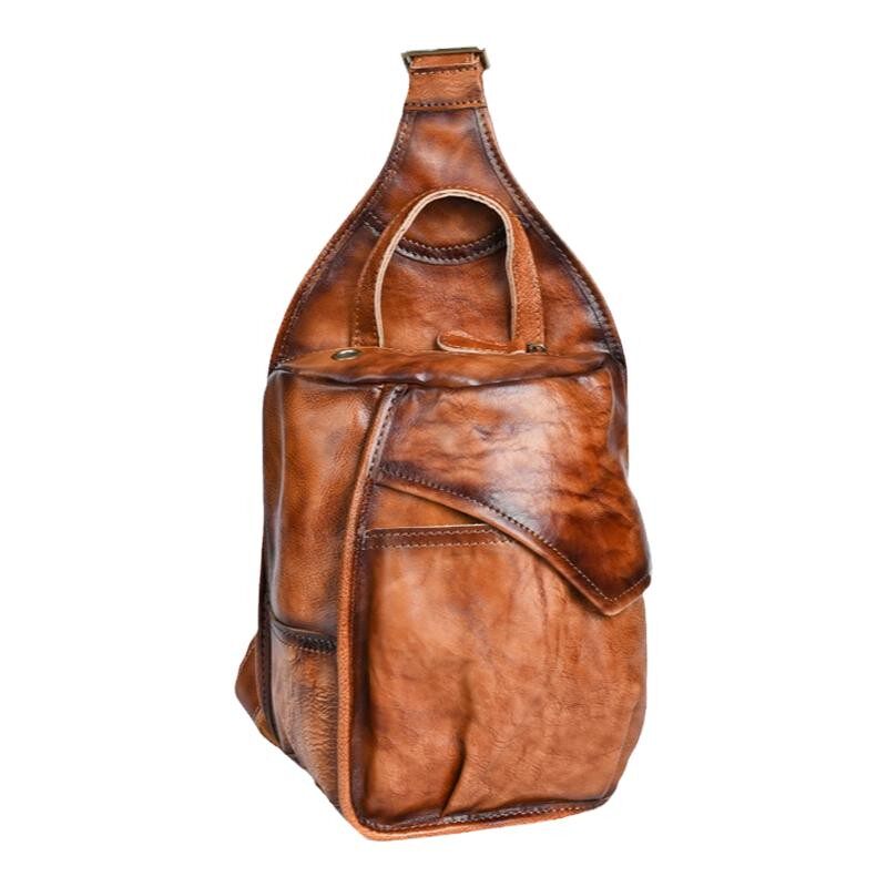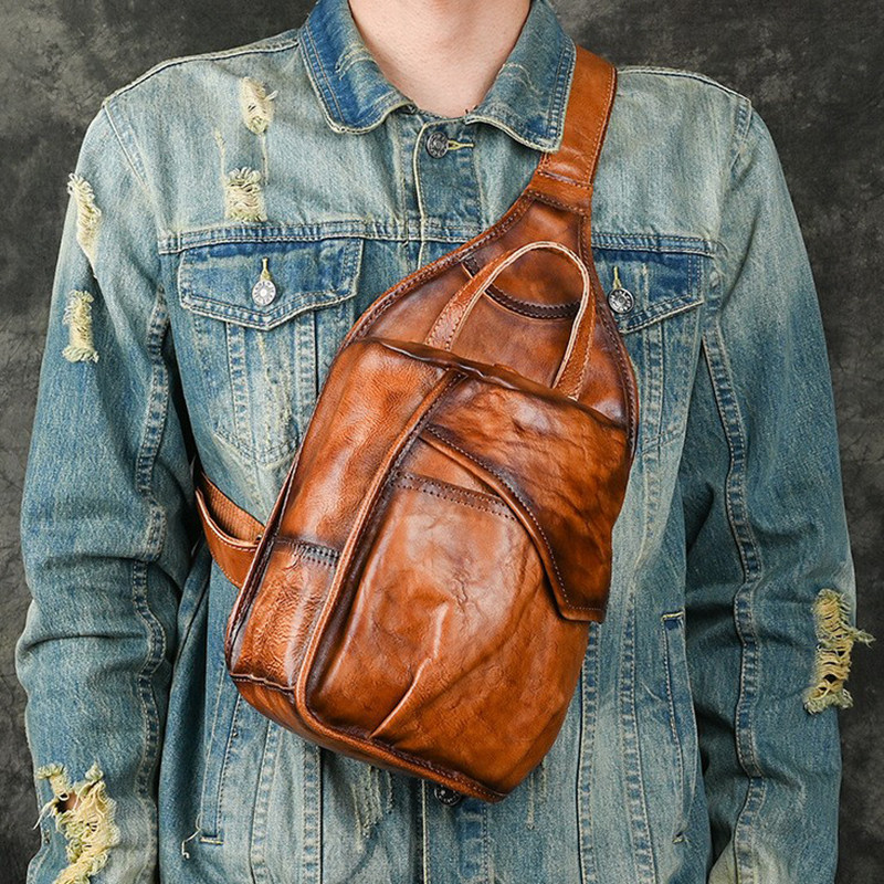 复古男包真皮胸包竖款 小包包 单肩斜挎包擦色植鞣头层牛皮休闲时尚由