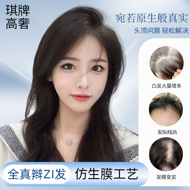 为您提供商品头顶遮白发真人发丝 琪牌假发片女小发碗大面积补发片隐形无痕法式的详细介绍,