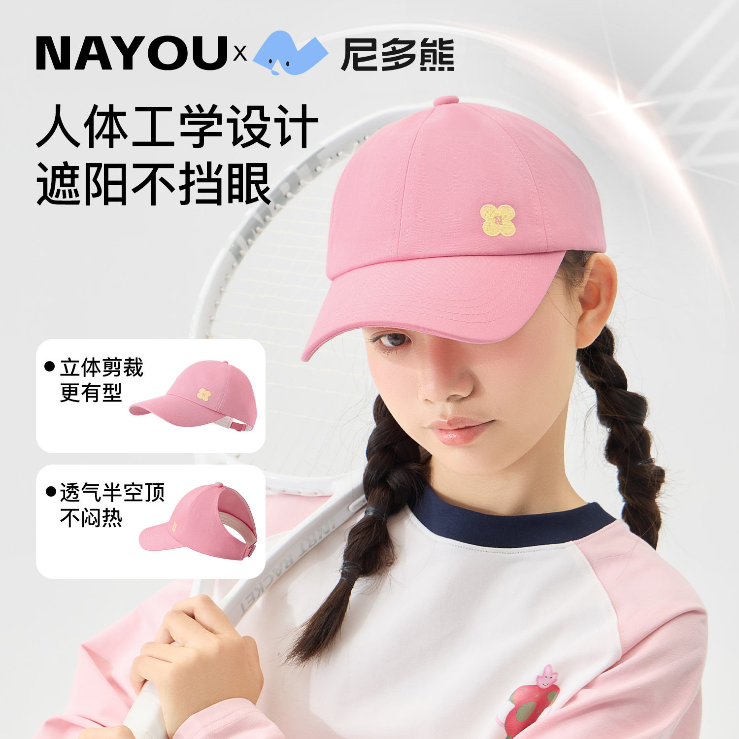 为您提供商品尼多熊2025儿童帽子春夏纯棉鸭舌帽女童棒球帽中大童半空顶遮阳帽的详细介绍,