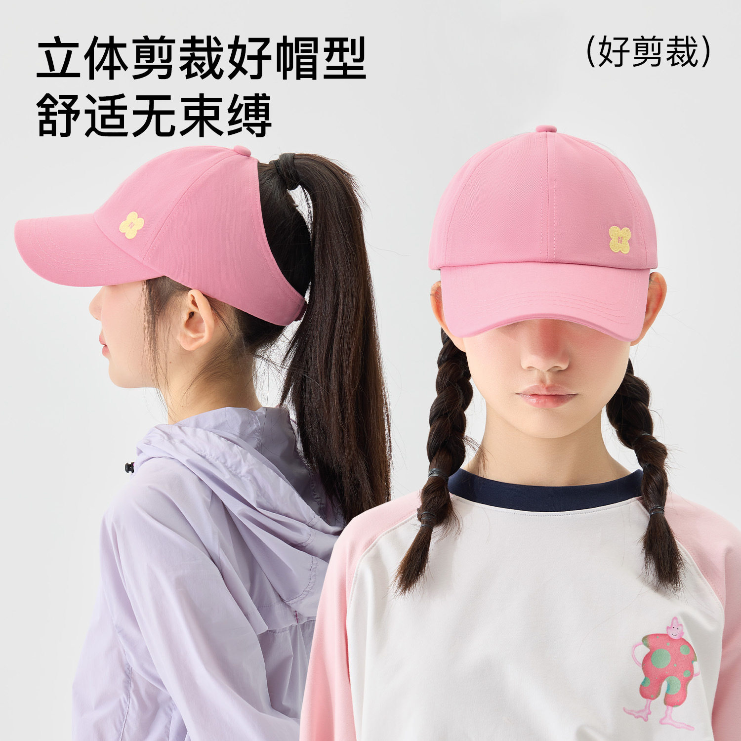 尼多熊2025儿童帽子春夏纯棉鸭舌帽女童棒球帽中大童半空顶遮阳帽