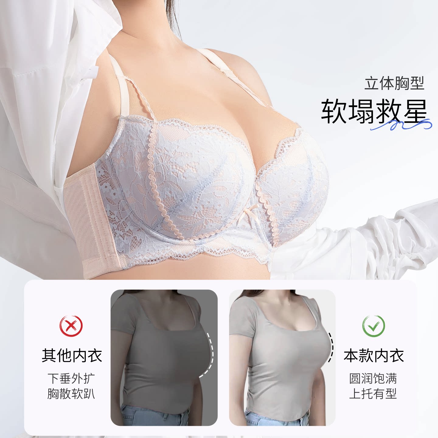 为您提供商品聚拢上托防下垂蕾丝调整型文胸罩薄 莱动内衣女大胸显大小性感大码的详细介绍,