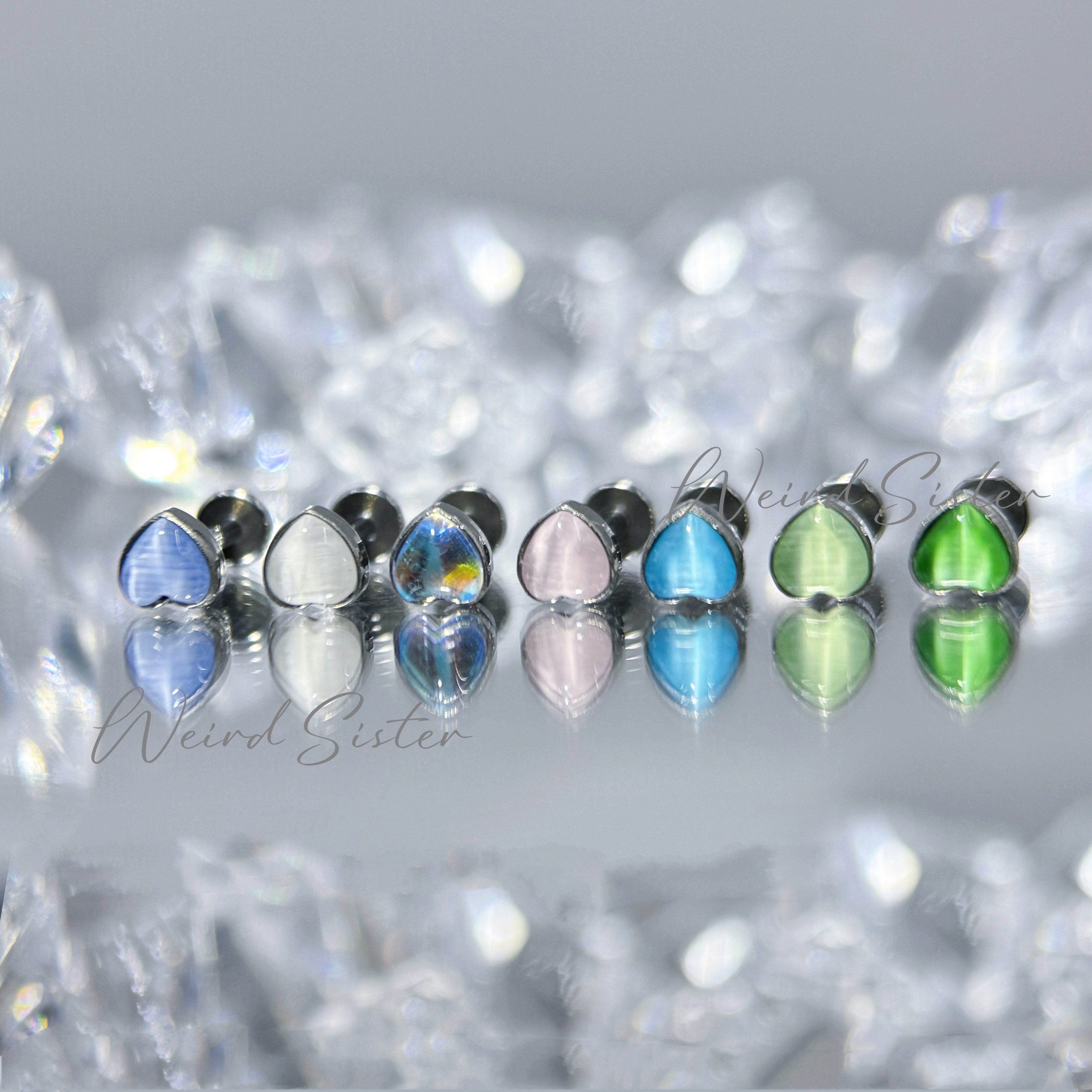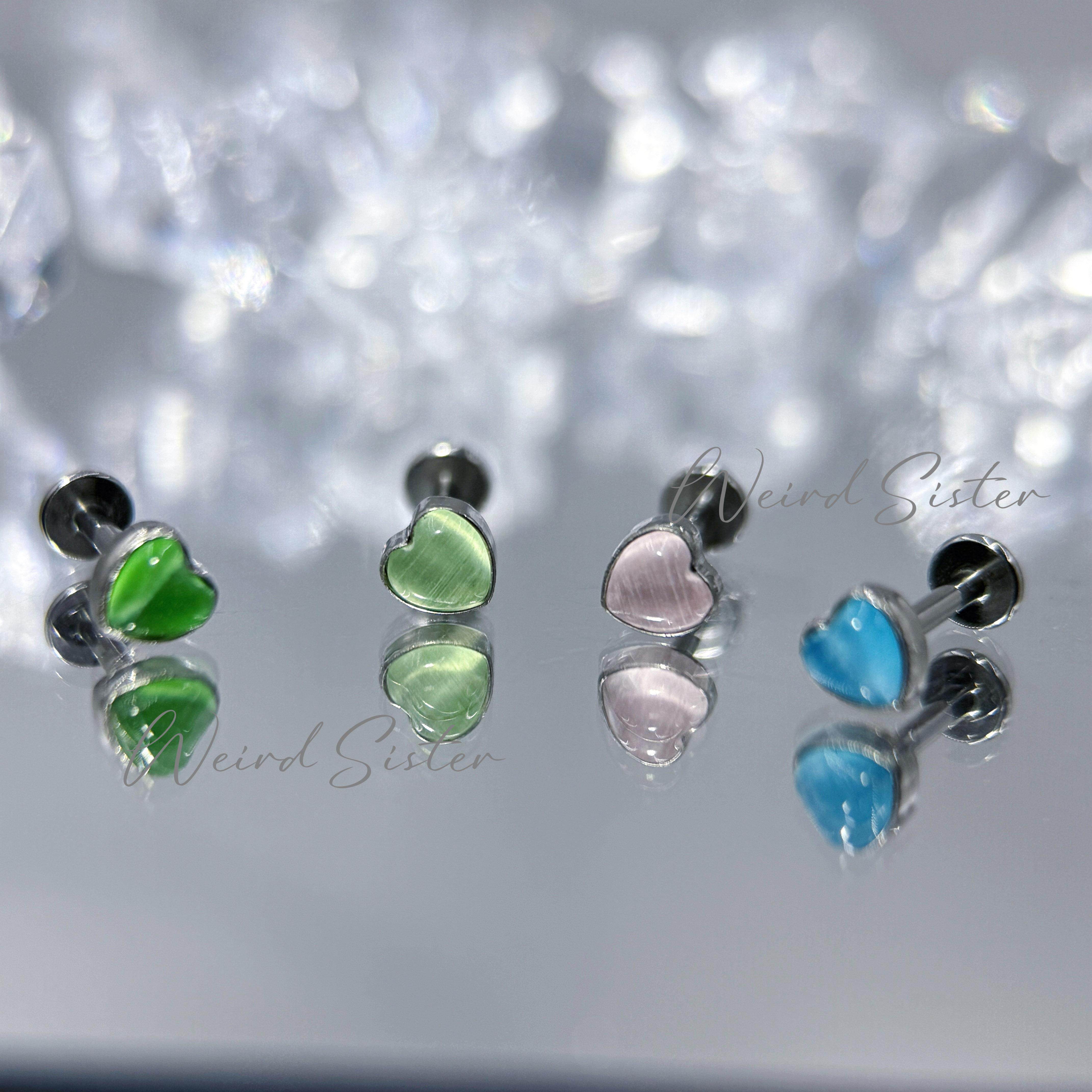 sister钛合金甜美爱心猫眼天然石多色耳钉耳骨耳蜗钉防过敏 weird由