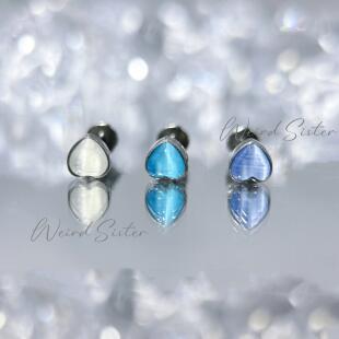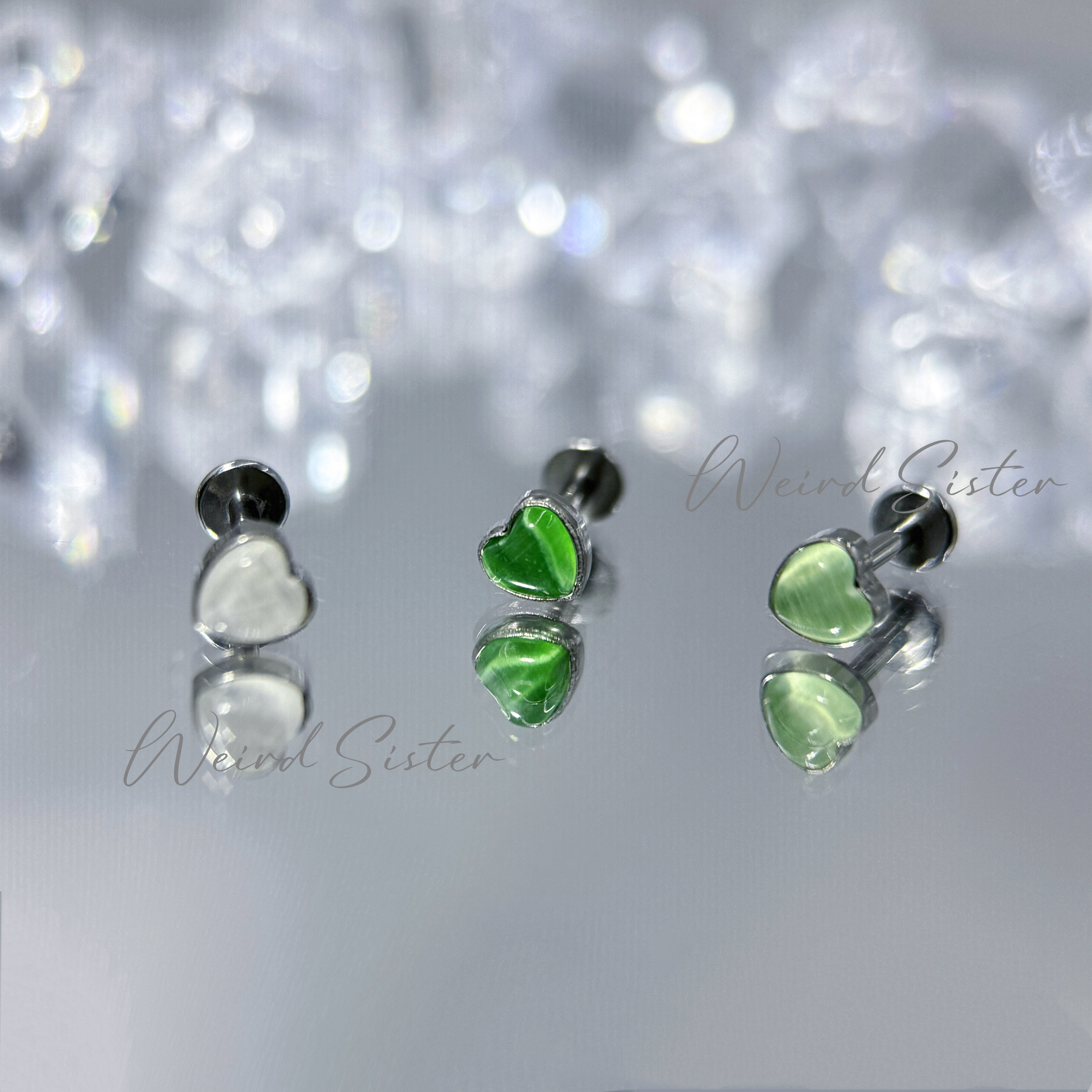 sister钛合金甜美爱心猫眼天然石多色耳钉耳骨耳蜗钉防过敏 weird