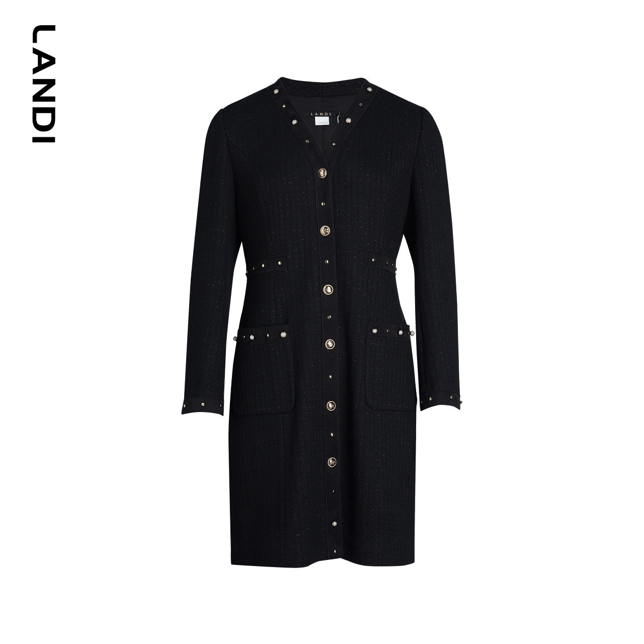 为您提供商品收腰连衣裙女冬新品 设计感V领羊毛针织开衫 LANDI蓝地黑色法式的详细介绍,