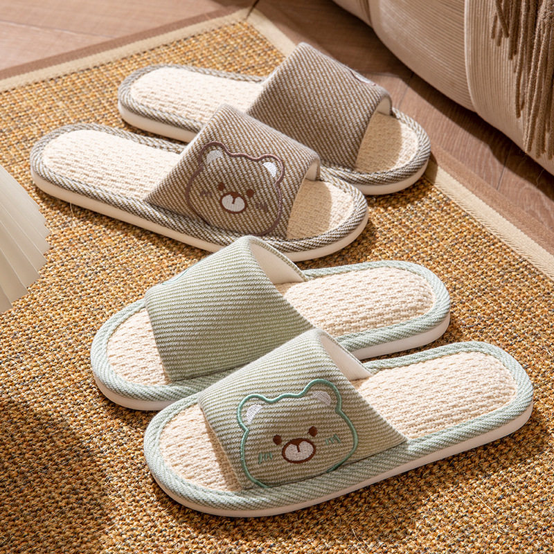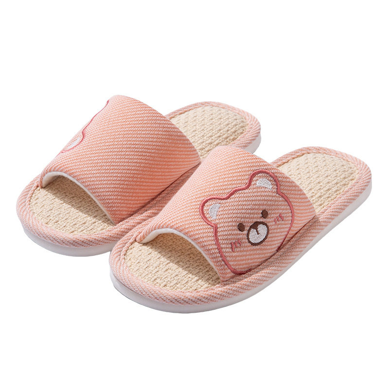 女春秋款 吸汗脚亚麻卡通可爱办公室内居家地板 通用棉麻布拖鞋 四季