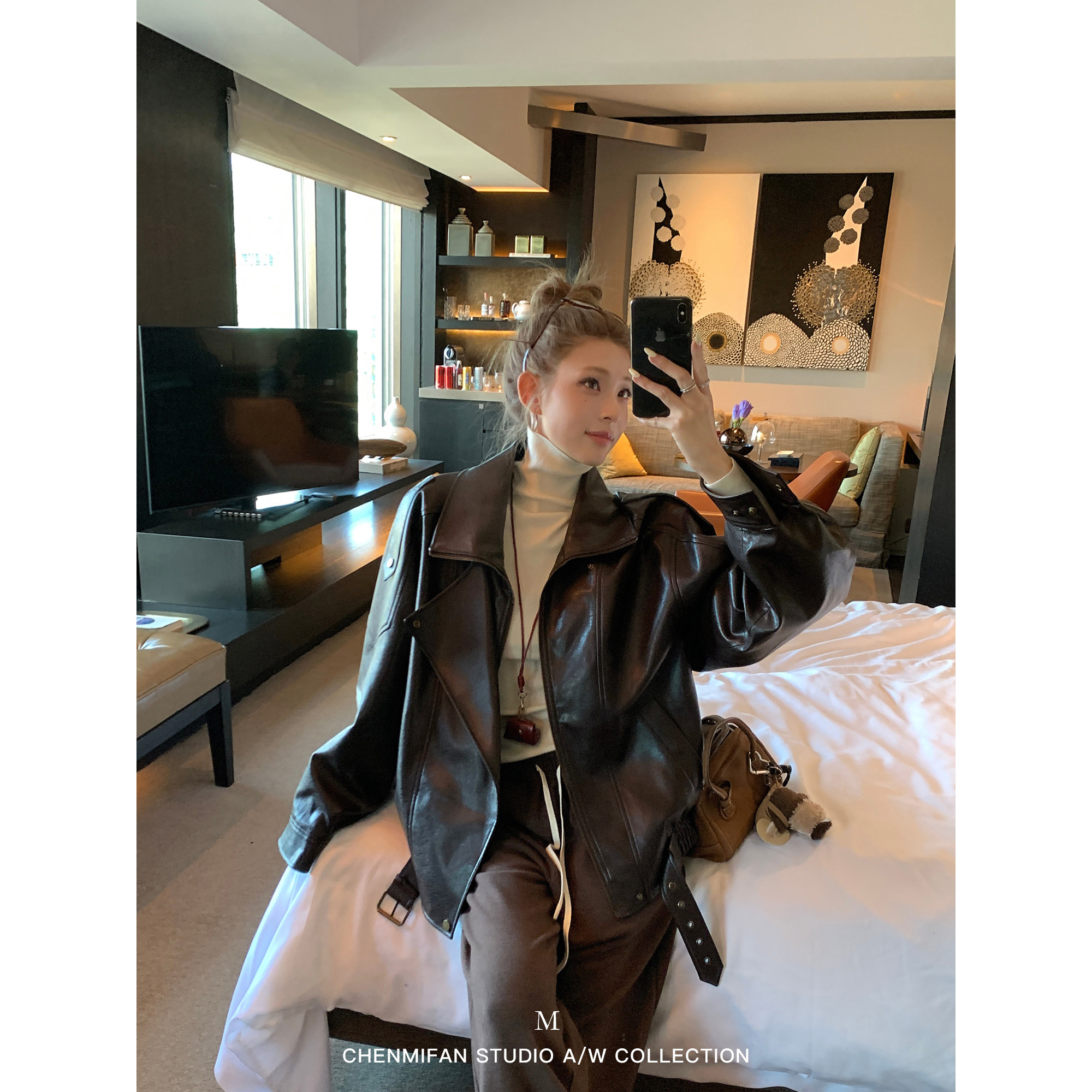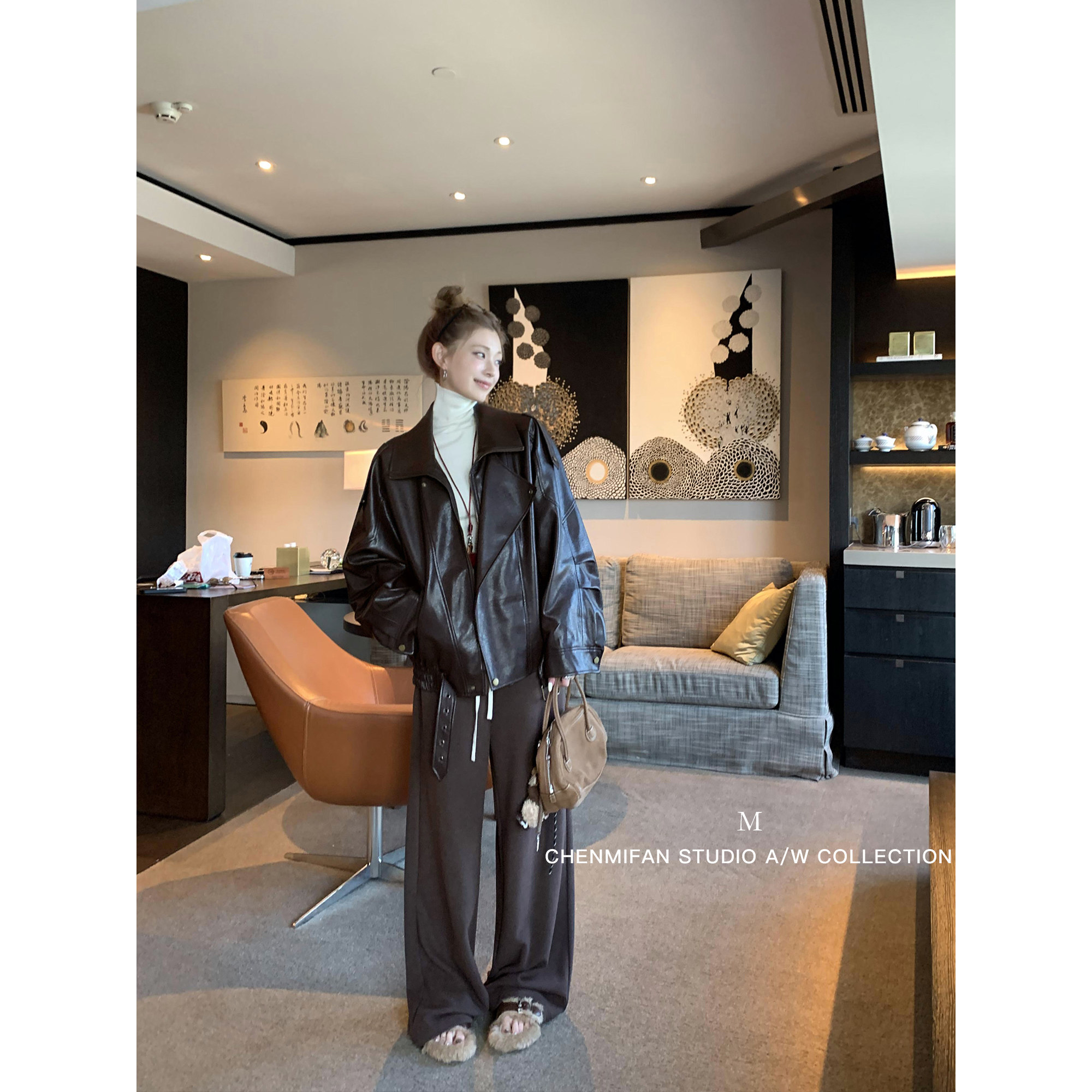 为您提供商品美式 pu皮衣外套女夹克高级感宽松廓形机车服 现货7.5折 辰米范的详细介绍,