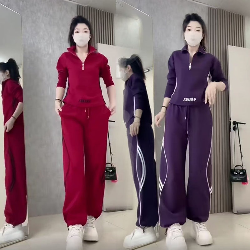 女运动休闲通勤慵懒时尚 2026春款 套装 两件套长袖 百搭阔腿裤