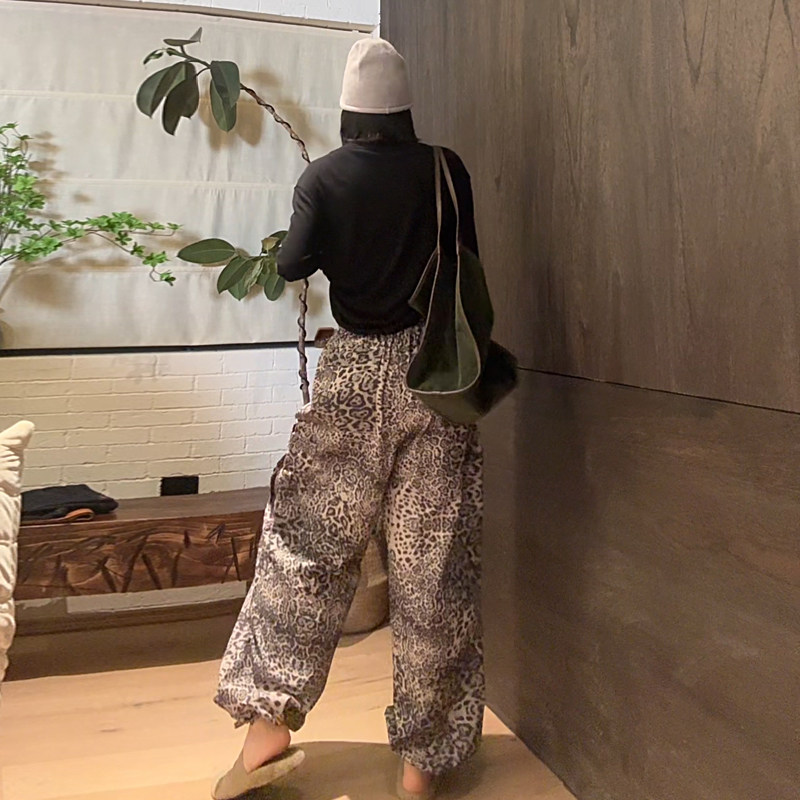 豹纹系带牛仔弯刀潇洒不羁垂坠阔腿裤 烟火 LUNA