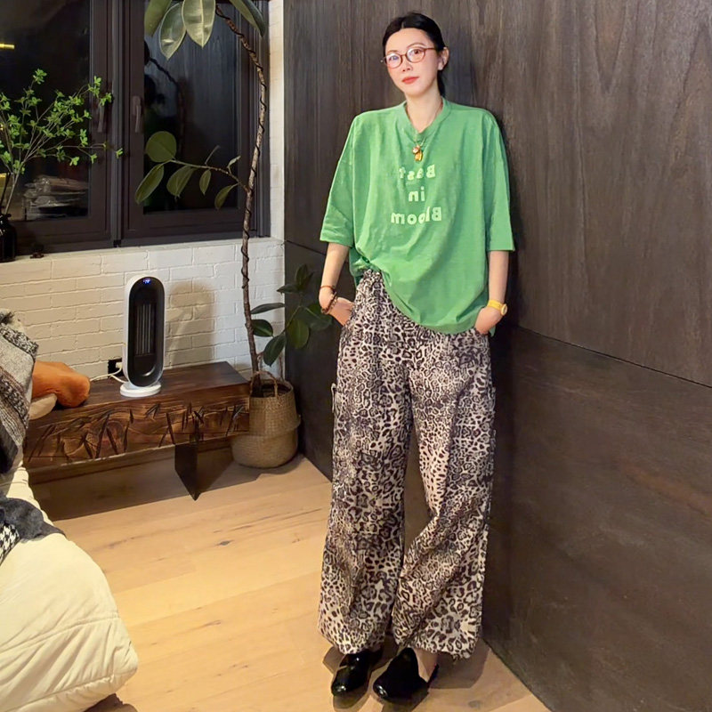 豹纹系带牛仔弯刀潇洒不羁垂坠阔腿裤 烟火 LUNA由