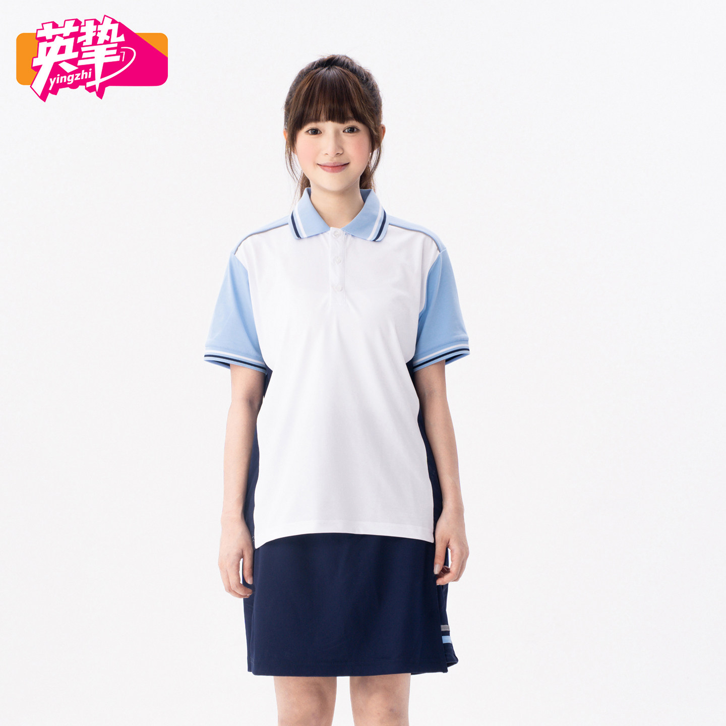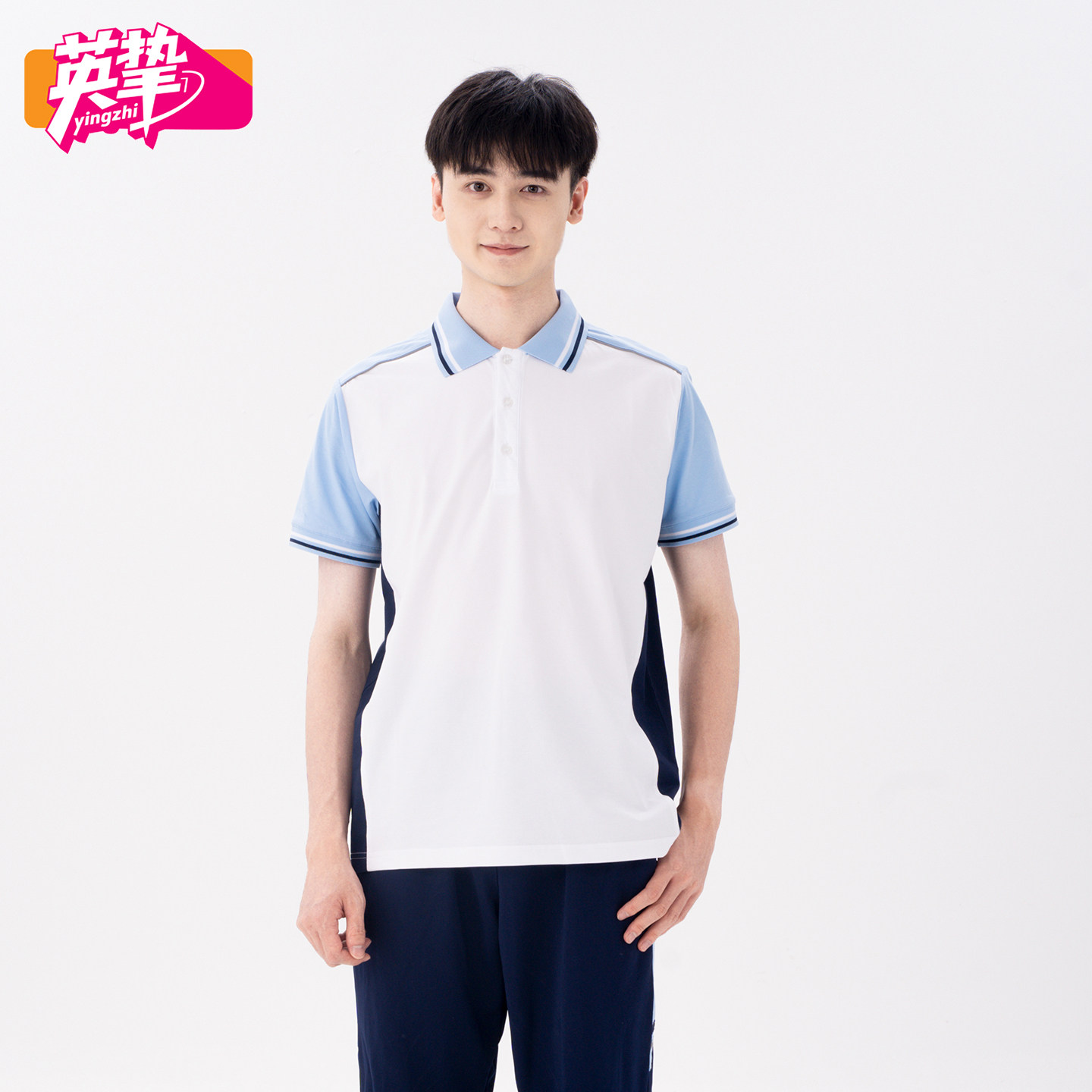 中蓝白色套装 高级 T恤短裤 深圳校服小学生中学生凉感速干夏运短袖