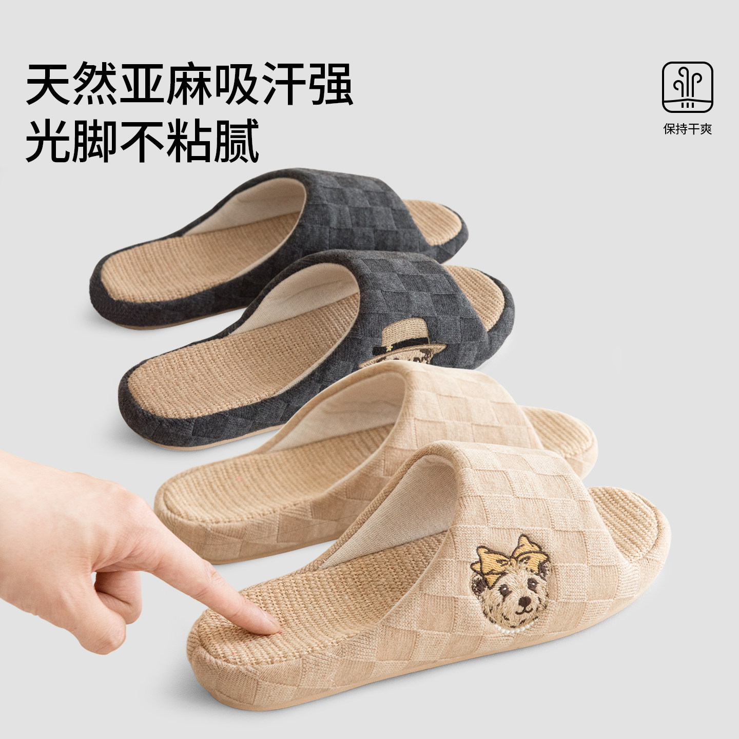 医护级亚麻拖鞋 居家吸汗防滑防臭抑菌无声棉麻拖鞋 四季 男2025新款