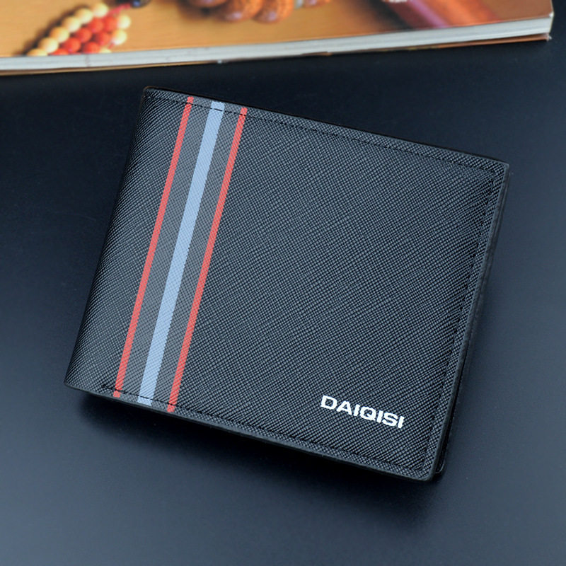 时尚 条纹拉链多卡位皮质钱夹 商务钱包短款 SuprFicial男士由