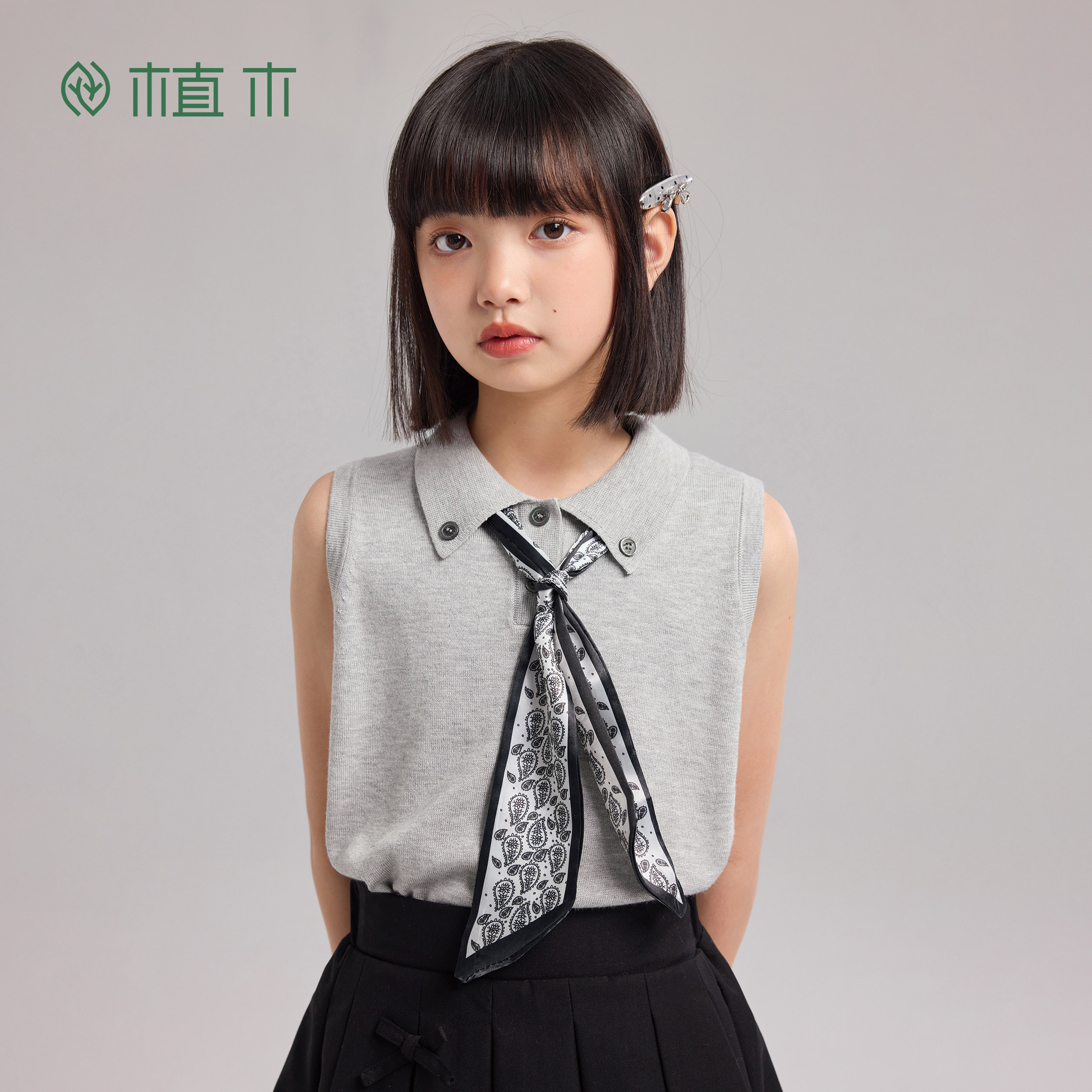 男女童通用 植木 给T恤加点戏 黑白腰果花丝巾 新 青少年26夏季由