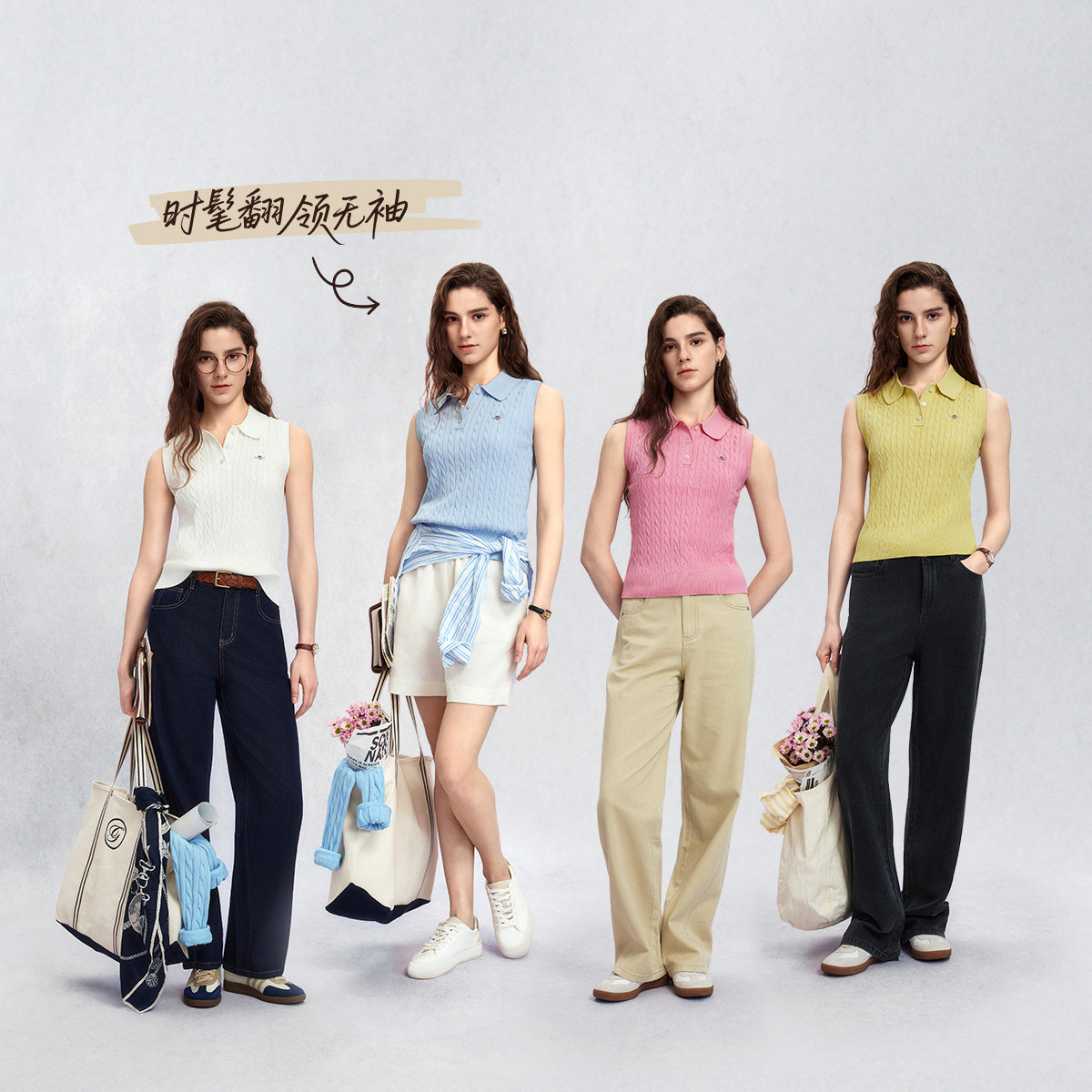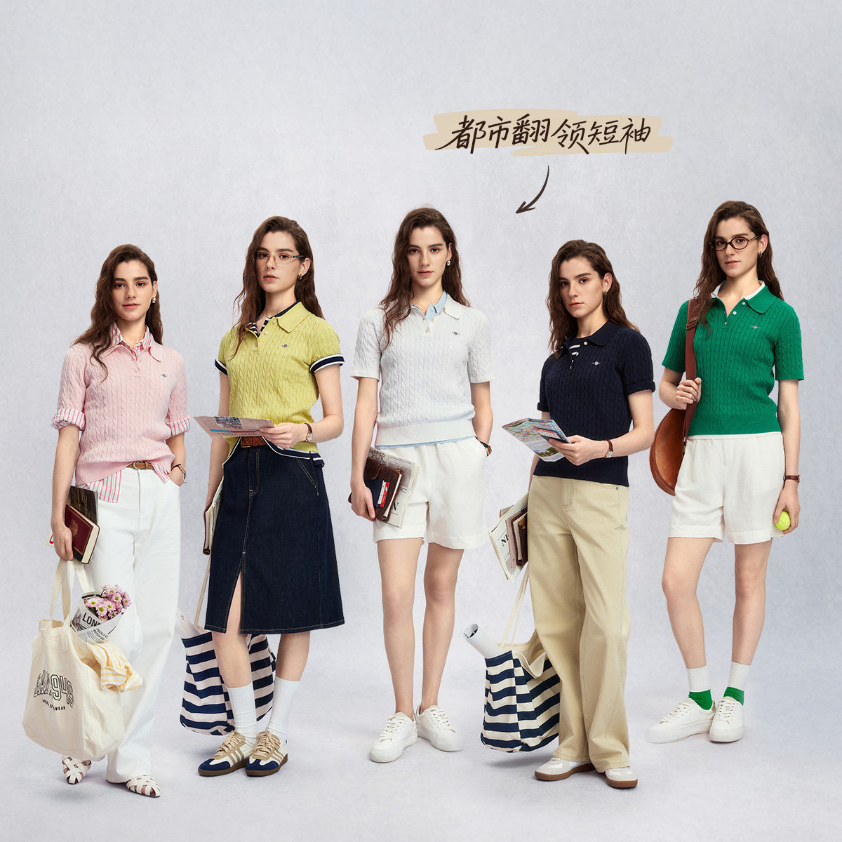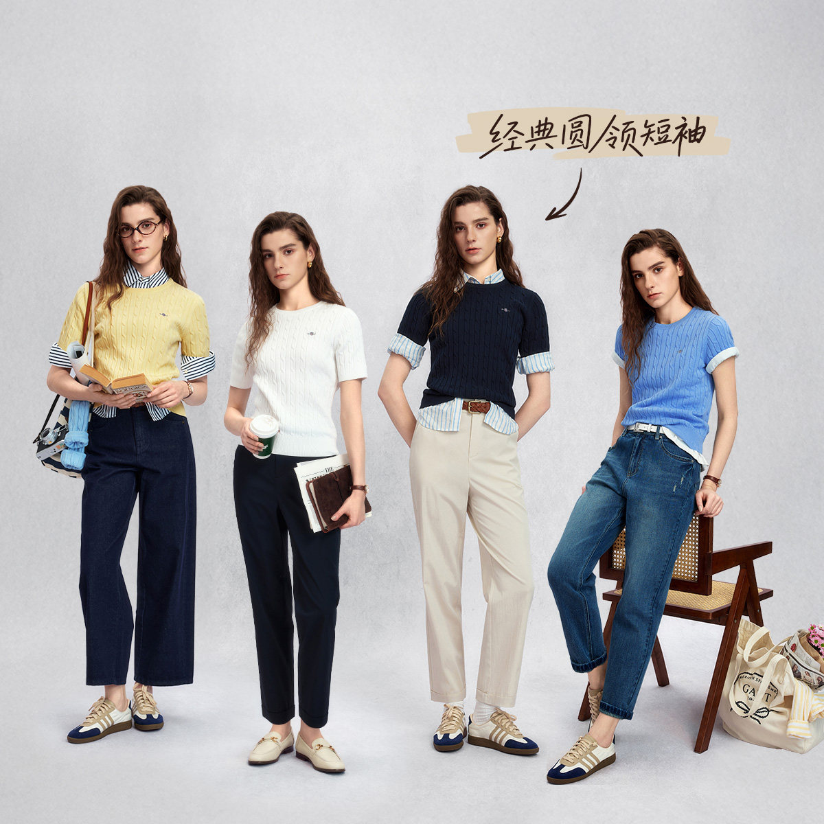 甘特26春夏新款 绞绞者 GANT 翻领绞花针织衫 女士休闲圆领短袖