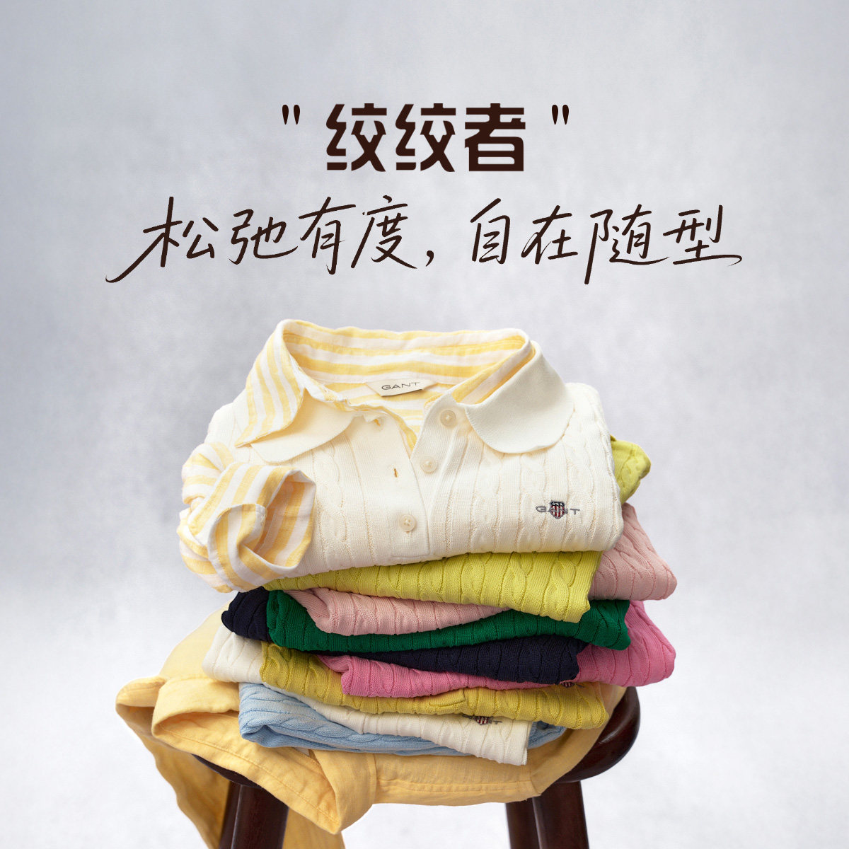 甘特26春夏新款 绞绞者 GANT 翻领绞花针织衫 女士休闲圆领短袖由