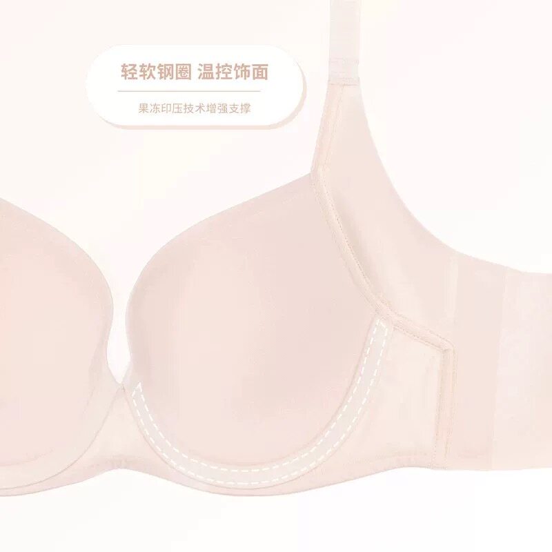 无痕内衣女薄款 新光面上托微聚拢全罩杯大胸显小文胸 小青提 遐