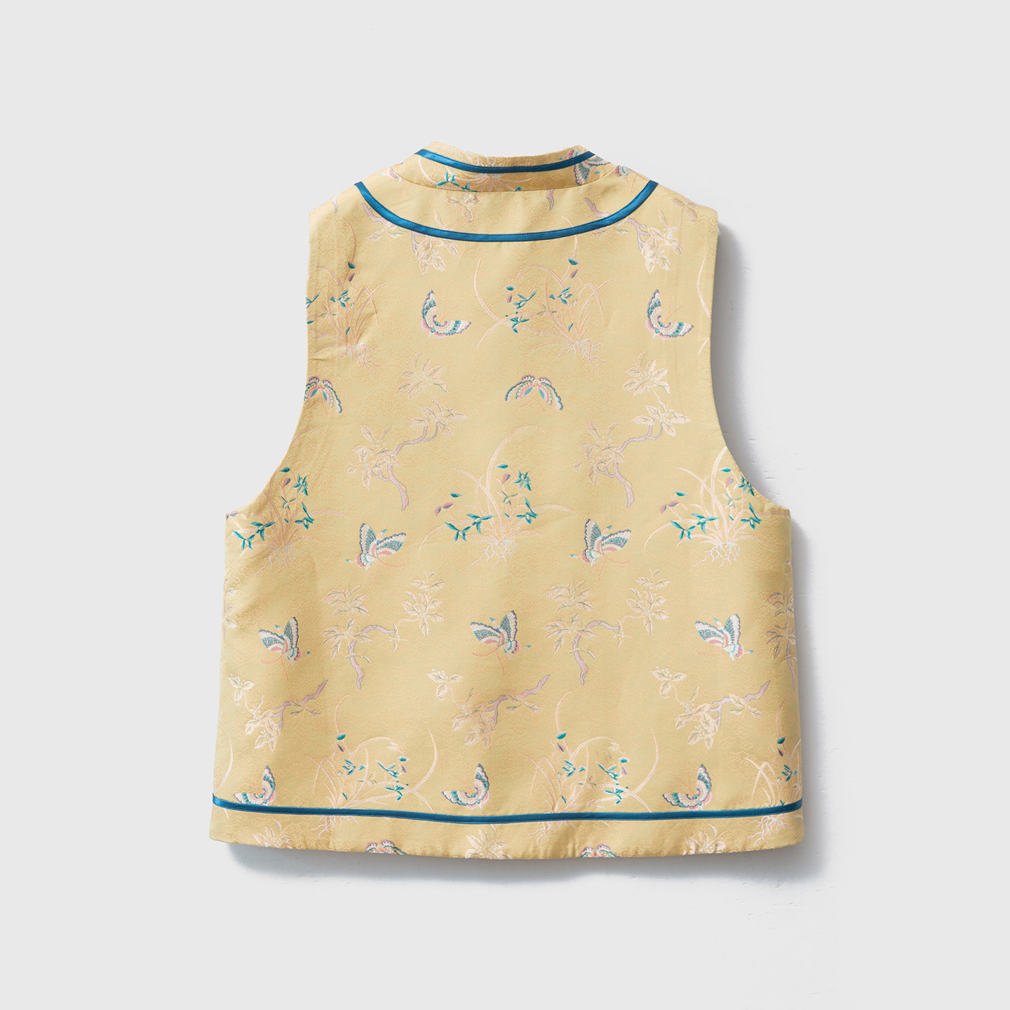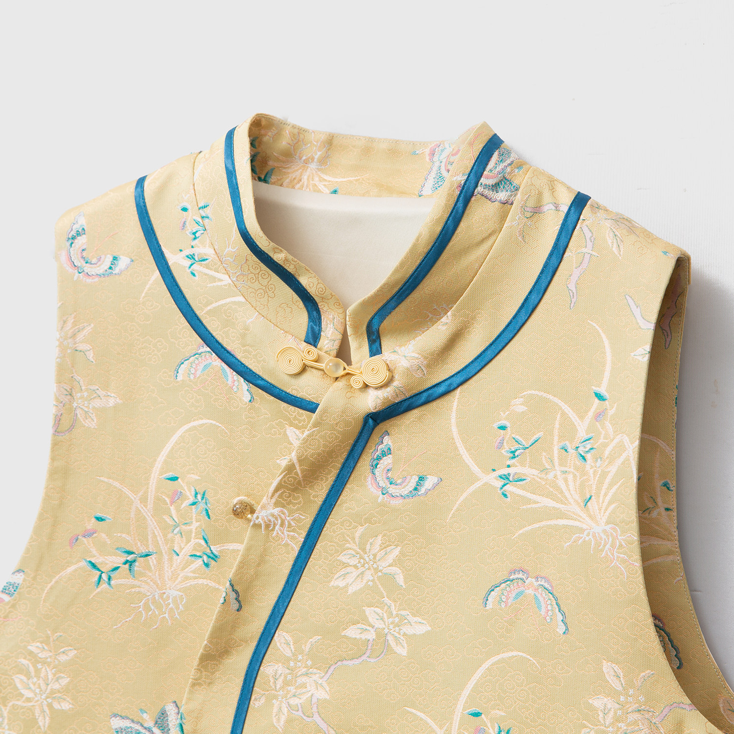 马甲小坎肩国风立领上衣 一丝牵100%桑蚕丝蝴蝶提花真丝宋锦新中式