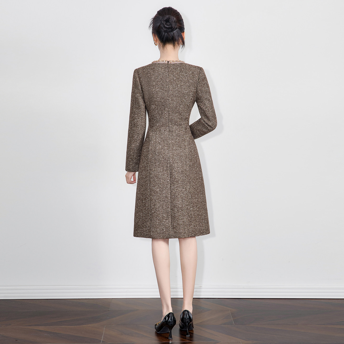为您提供商品时尚 名媛金线人字纹羊毛呢裙子 V镶钻领气质小香风连衣裙女秋冬款的详细介绍,