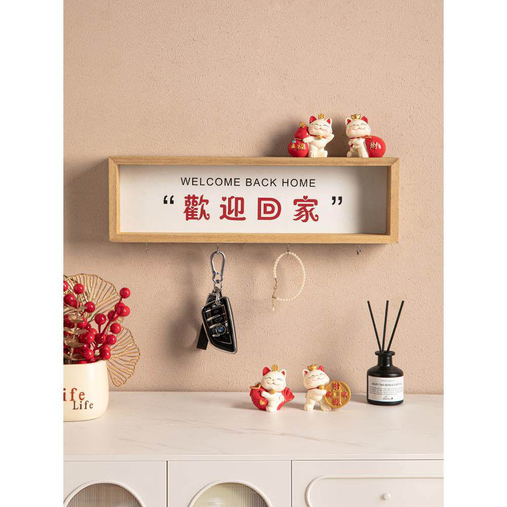 柜置物架 创意欢迎回家入户门口钥匙收纳挂钩免打孔墙壁挂饰玄关鞋