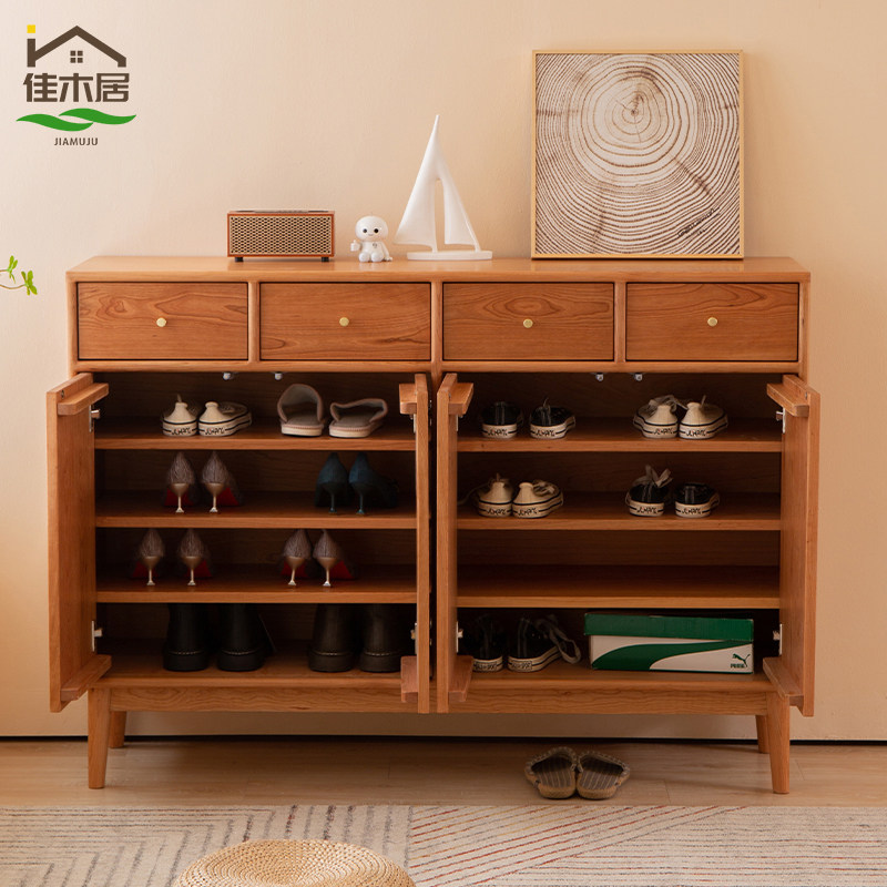 柜柜一体多层可定制樱桃木实木鞋 柜 柜大容量家用门口玄关鞋 实木鞋