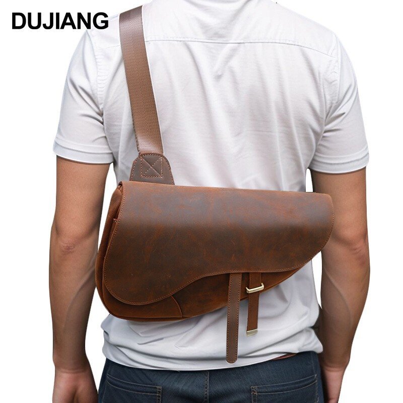 2026新款 疯马皮男士 包多功能男斜挎胸包马鞍包同款 男生 跨境新款