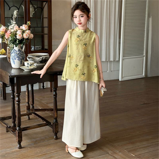 阔腿裤 女童夏季 两件套 上衣新中式 洋气小女孩无袖 国风套装 2026新款由