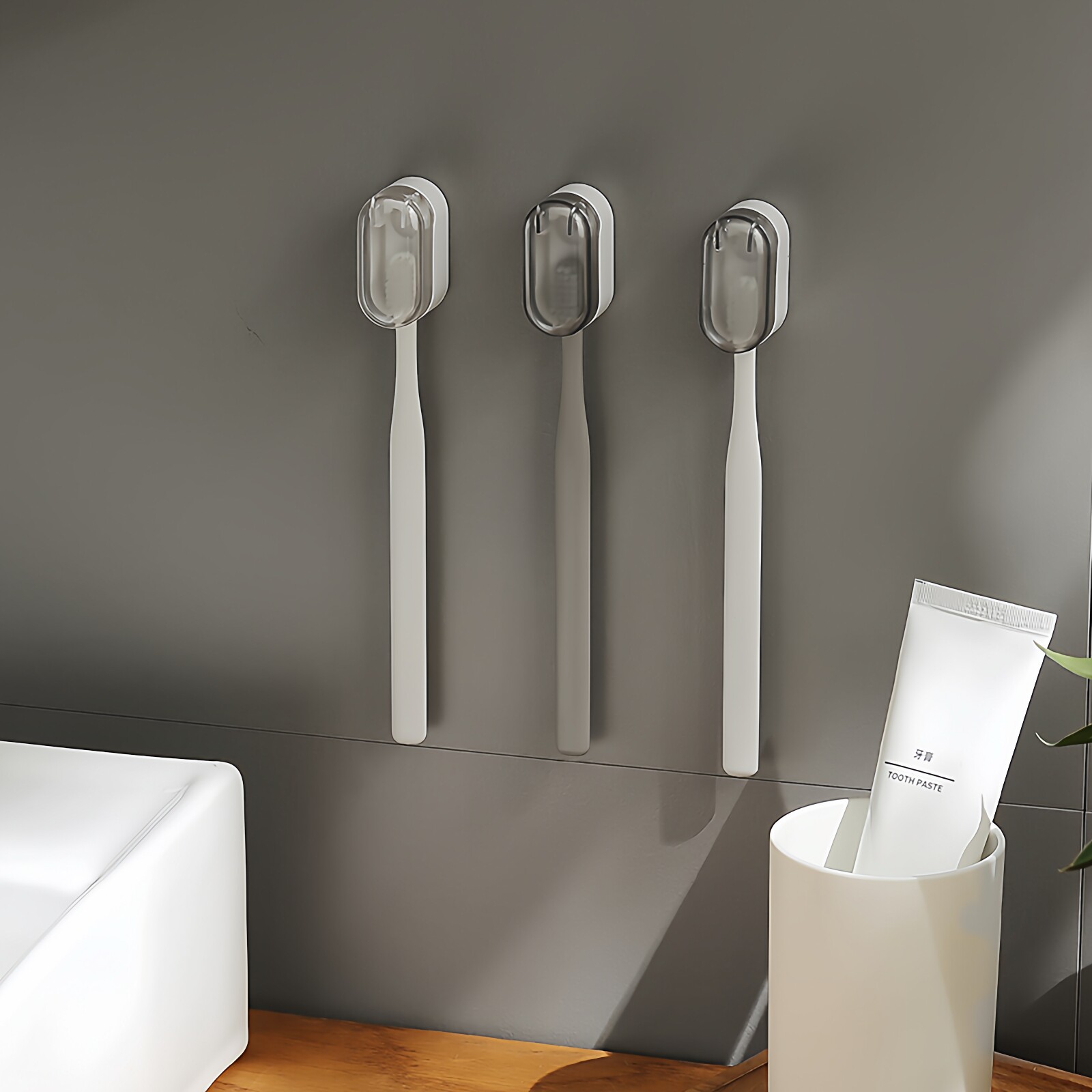 牙刷置物架壁挂式 简约免打孔电动牙刷悬挂收纳架 漱口杯刷牙杯套装