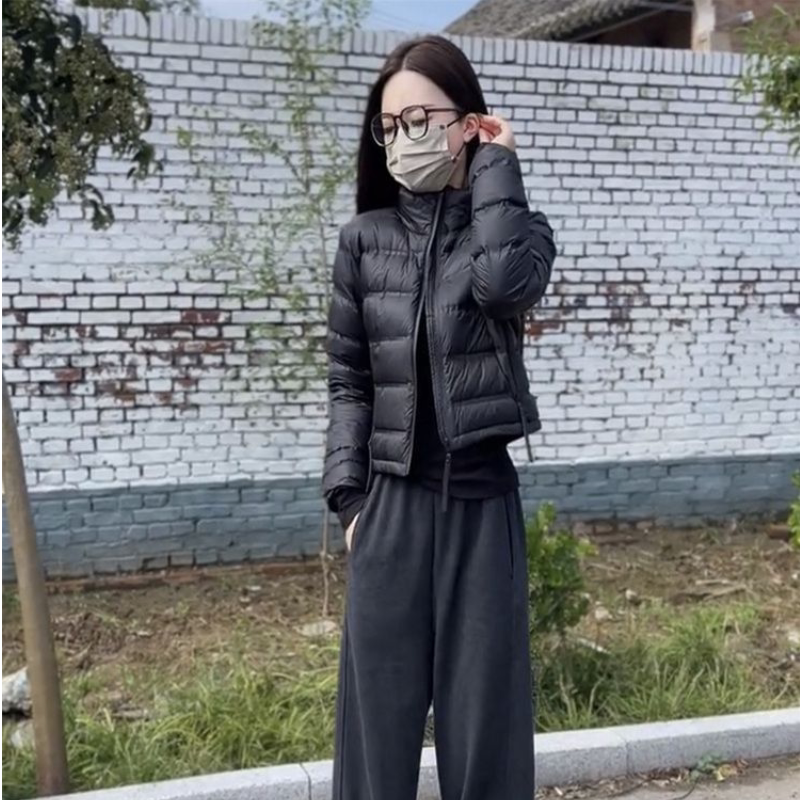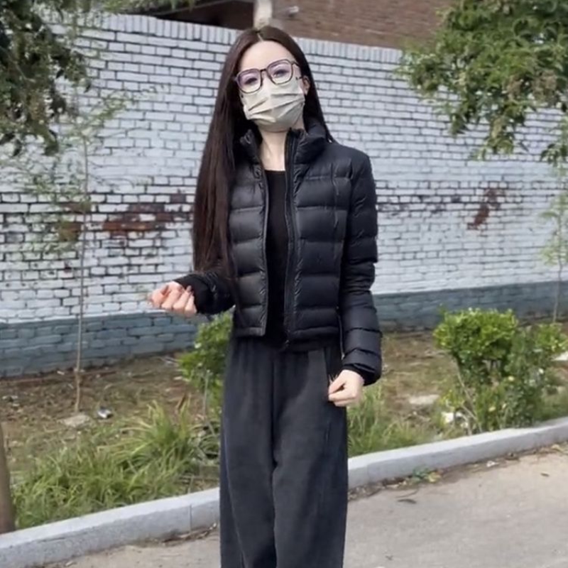 2025秋冬网红新款 棉服女气质精致黑色立领保暖显瘦短棉衣 轻薄短款