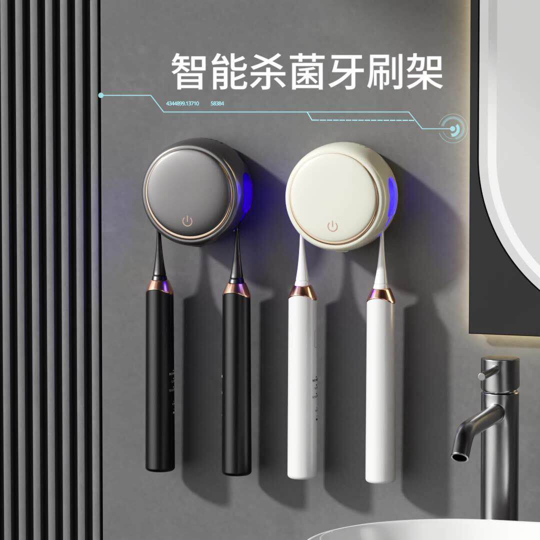 电动牙刷牙杯架挂墙置物架漱口杯 智能杀菌牙刷消毒器免打孔壁挂式