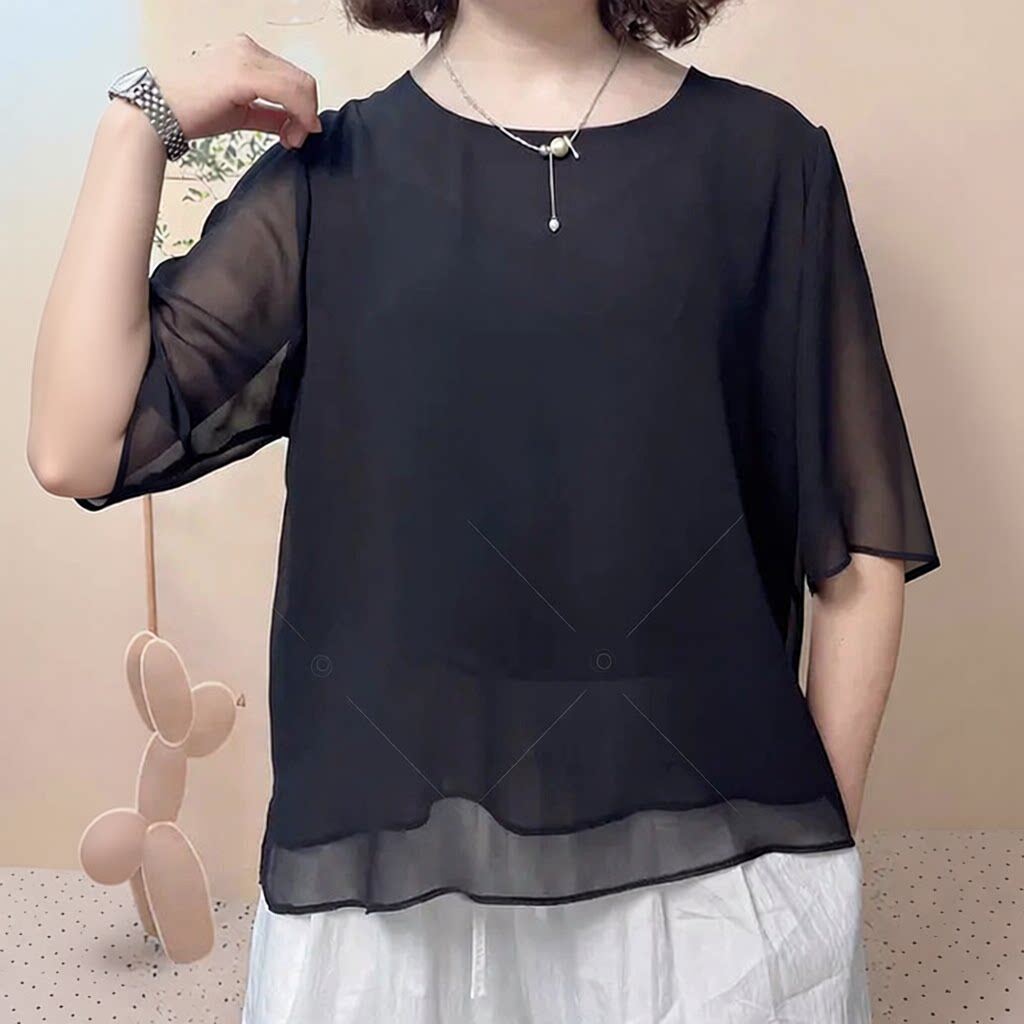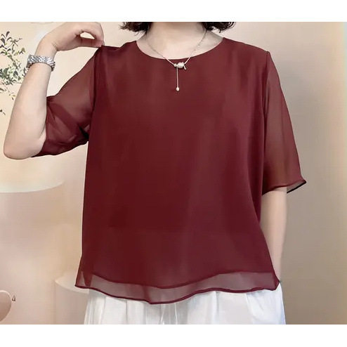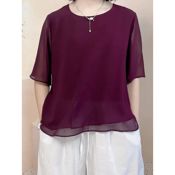 t恤小衫 薄款 妈妈气质百搭遮肚子短袖 新款 雪纺衫 上衣女2026年夏装由