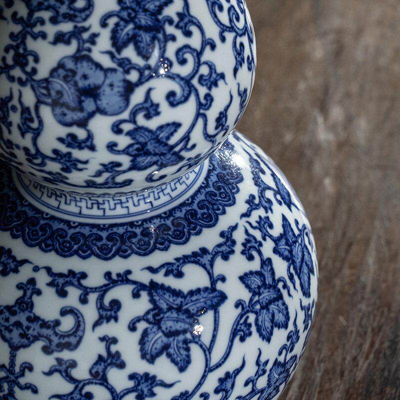玄关摆件乔迁生日礼品 宁封窑青花瓷葫芦瓶彷古景德镇陶瓷客厅中式由