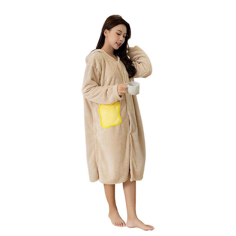 秋冬浴袍可穿浴巾女家用珊瑚绒吸水柔软速干浴裙洗澡睡袍睡衣连帽