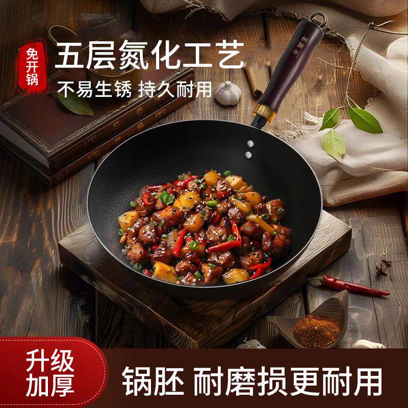 炒锅家用不粘锅无涂层燃气灶适用 章丘炒菜锅传统铁锅官方旗舰老式