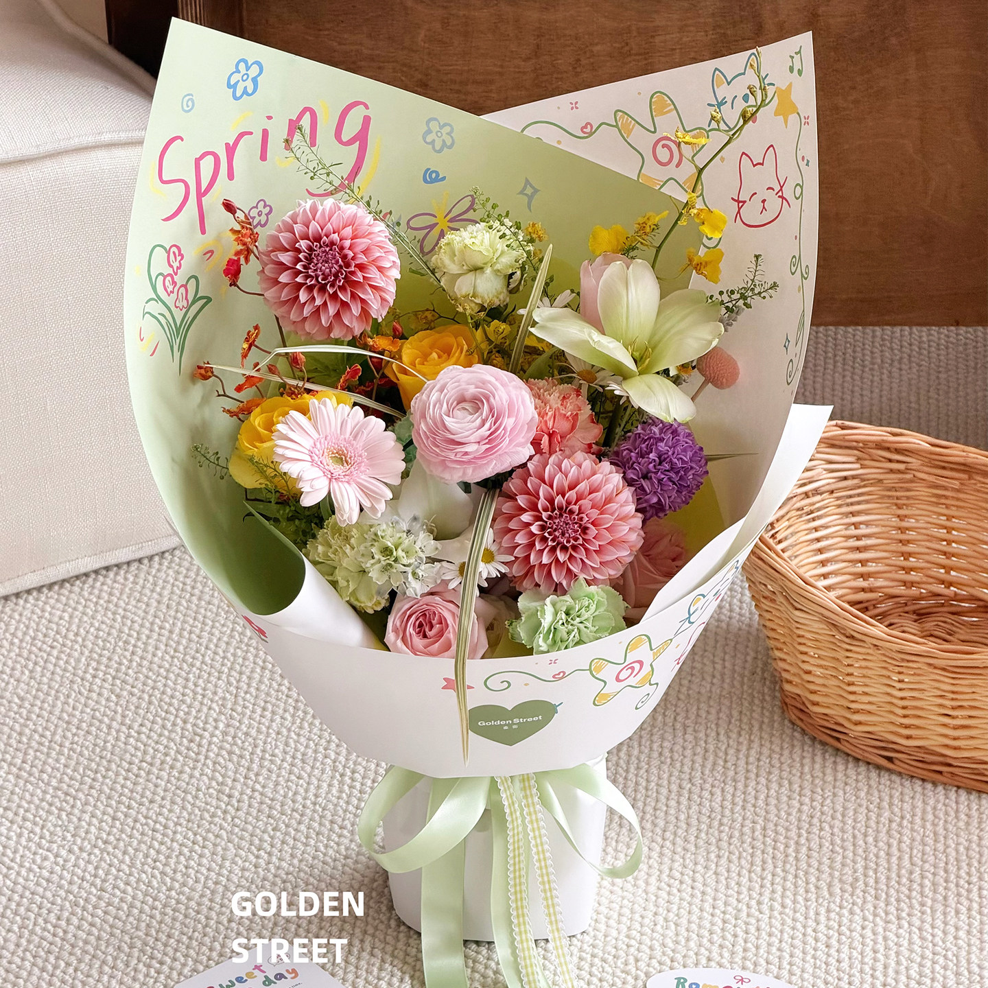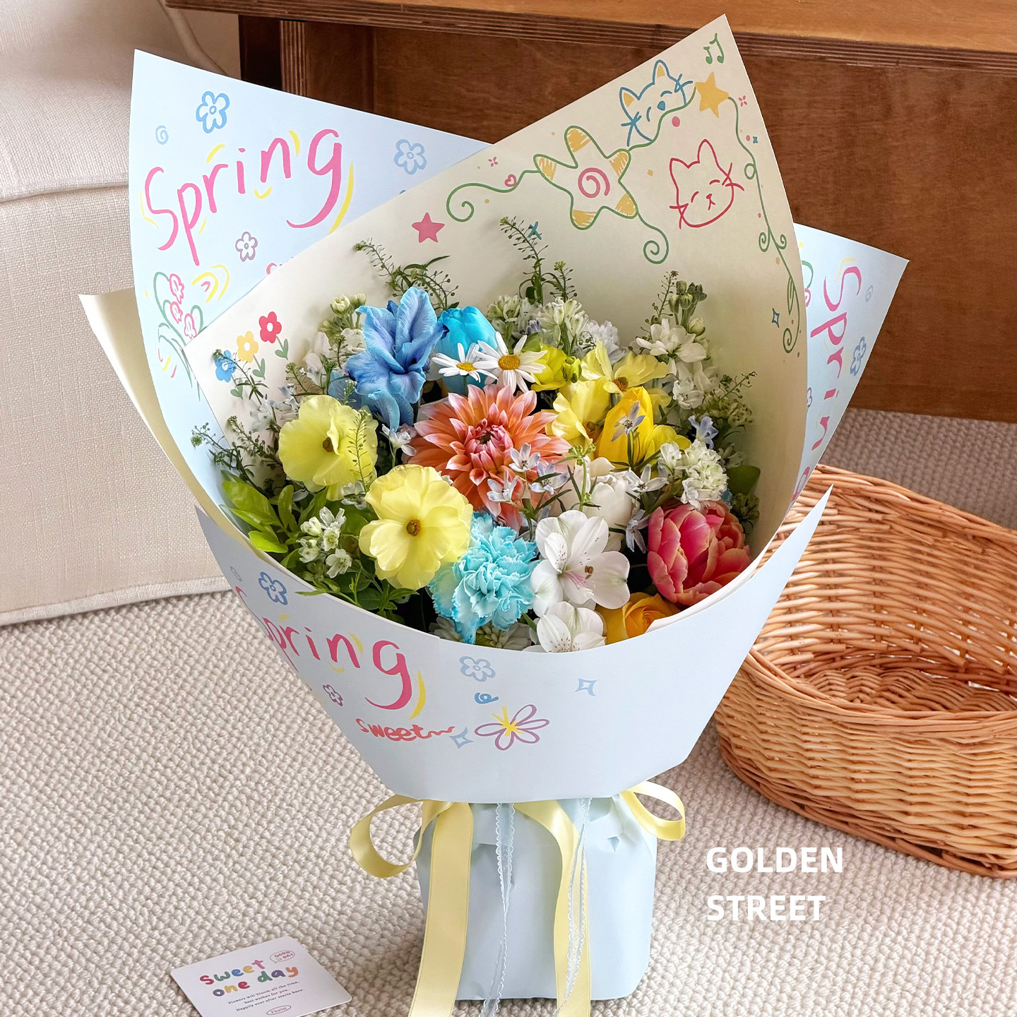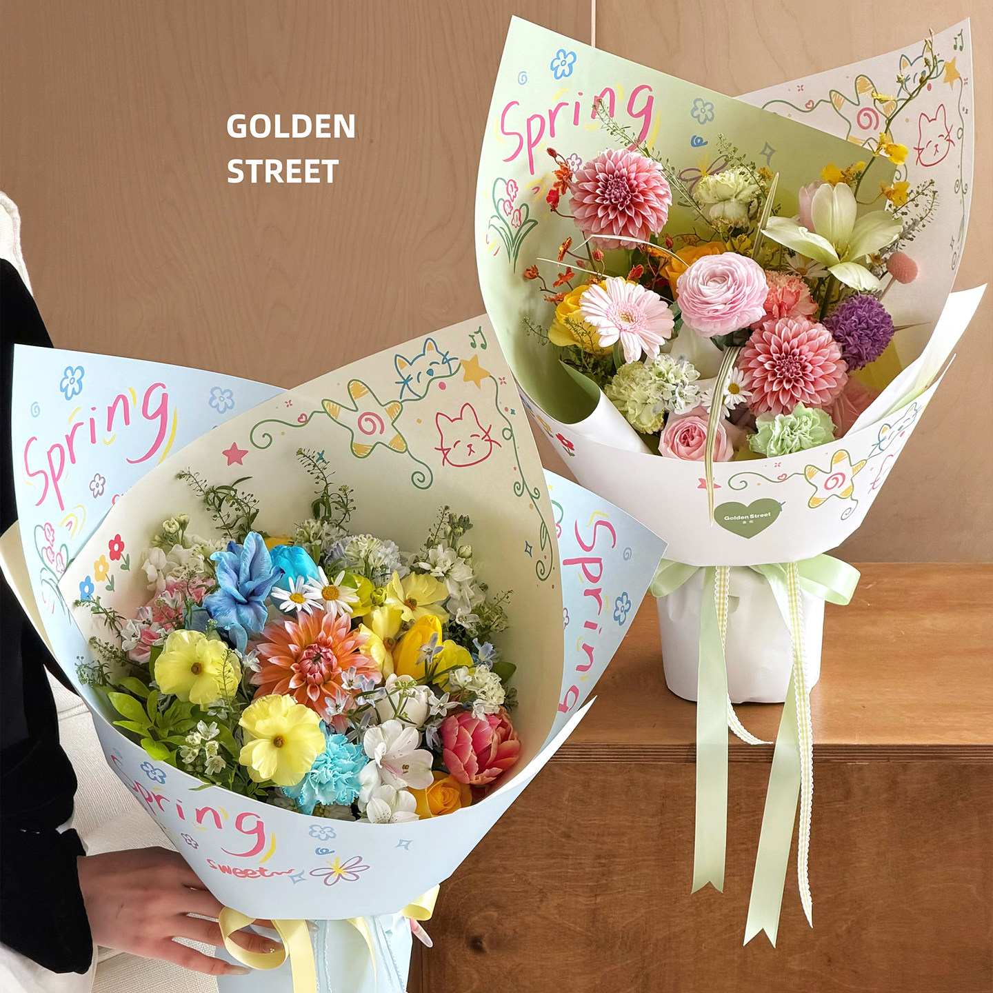 星语 纸创意涂鸦纸鲜花束氛围包花纸DIY手工材料 春涂小花系列包装由