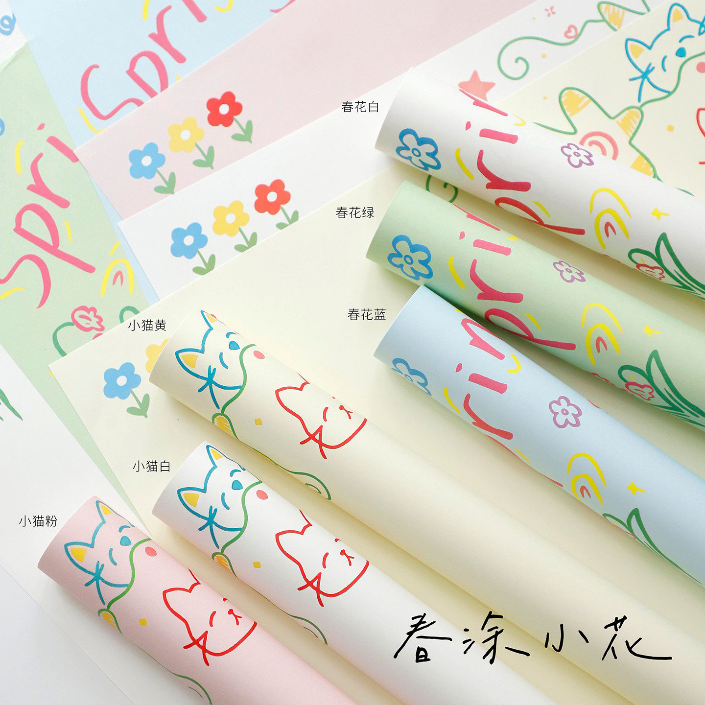 星语 纸创意涂鸦纸鲜花束氛围包花纸DIY手工材料 春涂小花系列包装