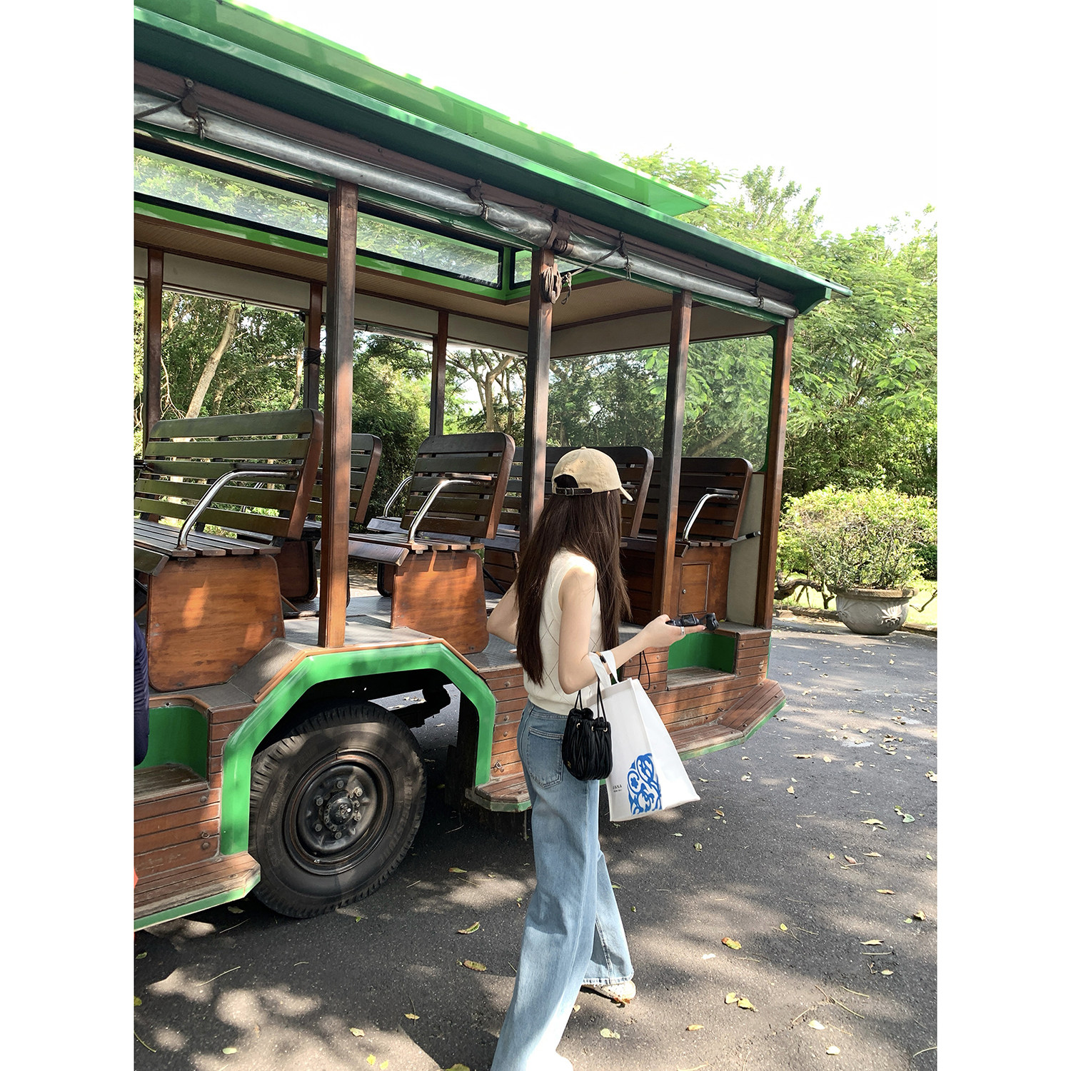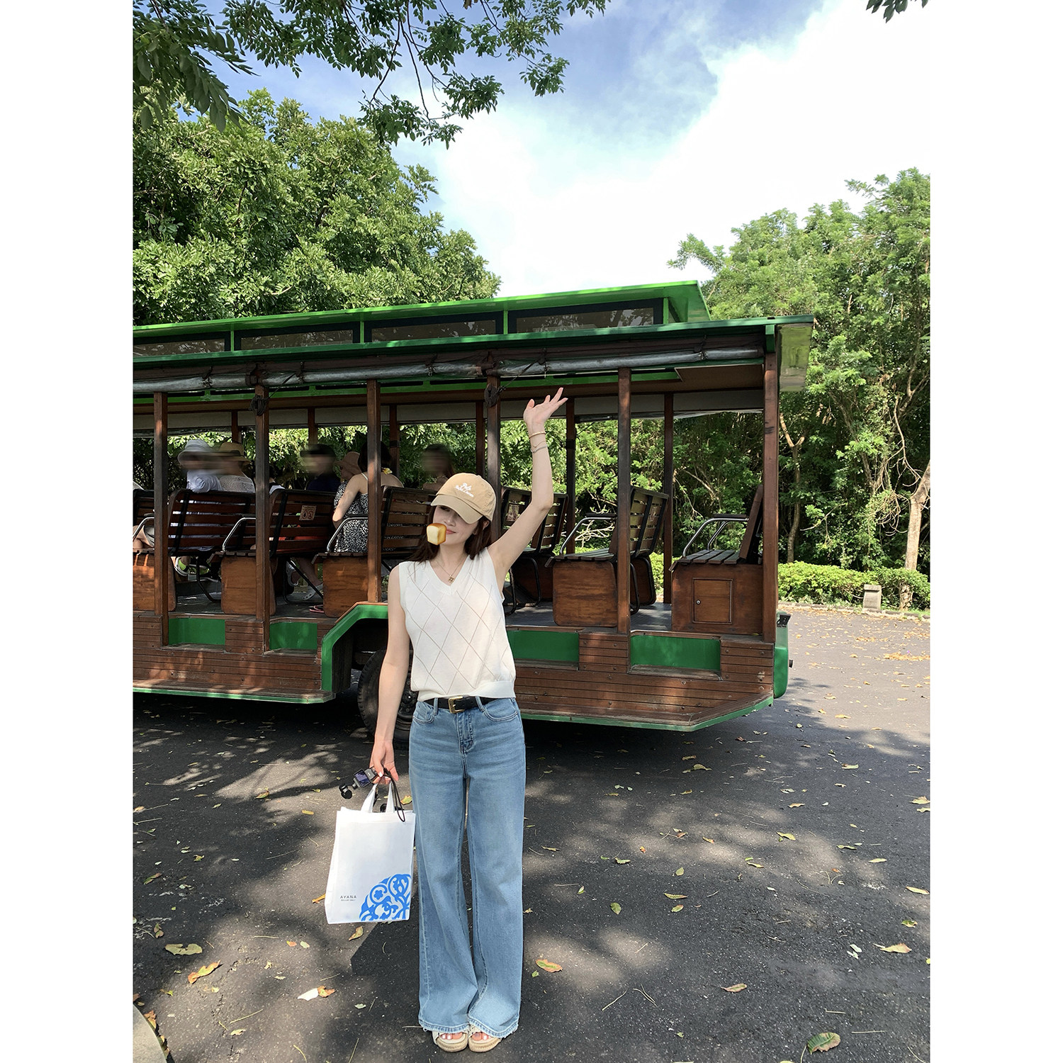 女高腰宽松显瘦休闲百搭直筒长裤 白色阔腿牛仔裤 pusumede自留款