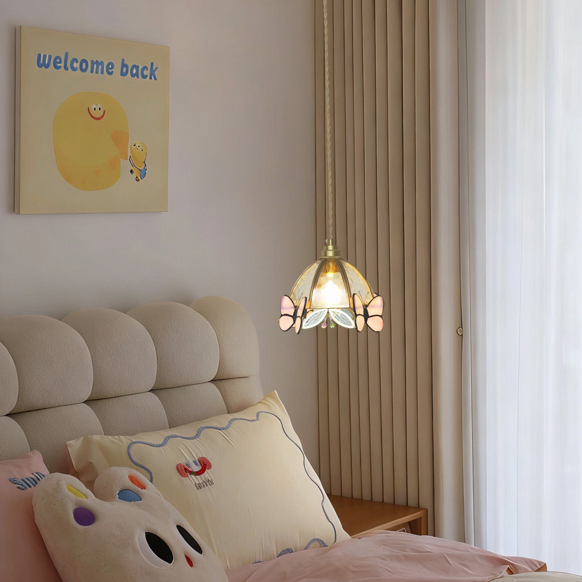 法式 饰灯 复古蒂凡尼蝴蝶吊灯全铜玻璃卧室床头餐厅吧台玄关网红装