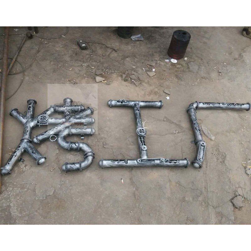 饰品悬挂齿轮管立体门头文字数字母招牌金属 复古铁艺工业风墙面装由