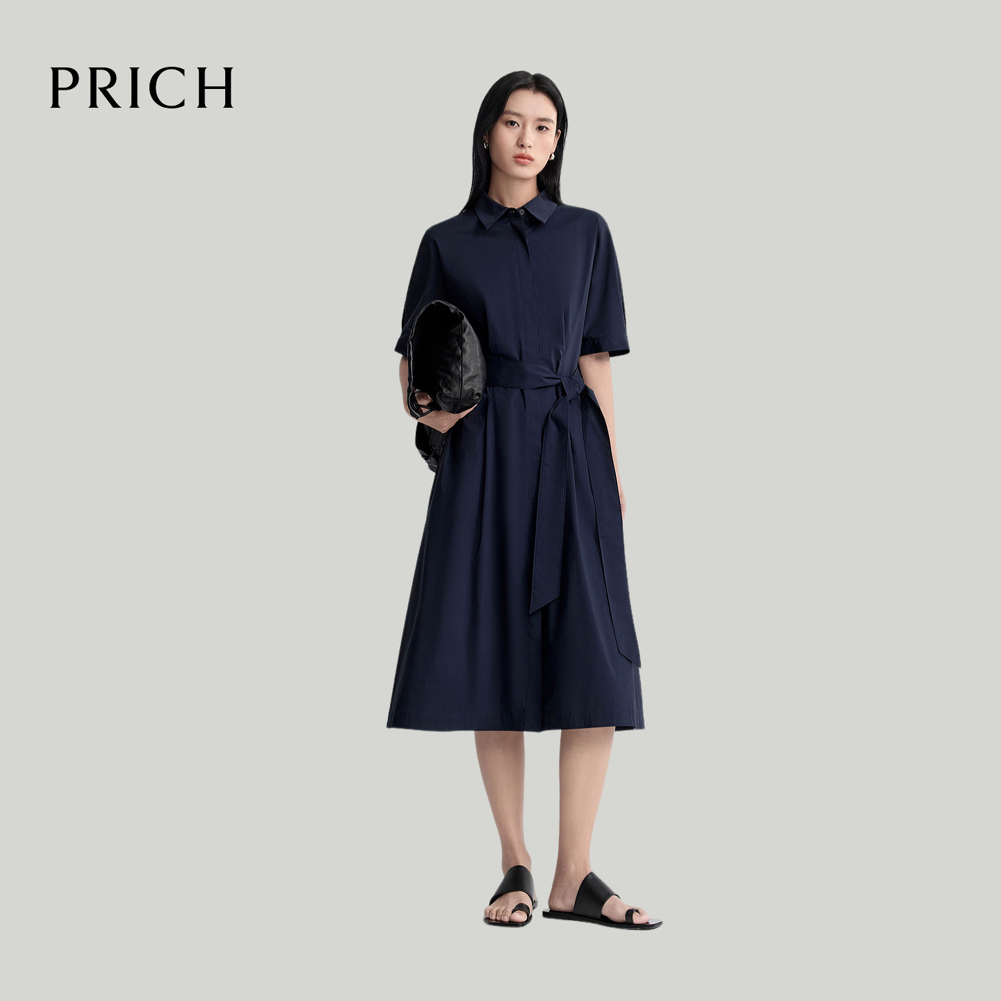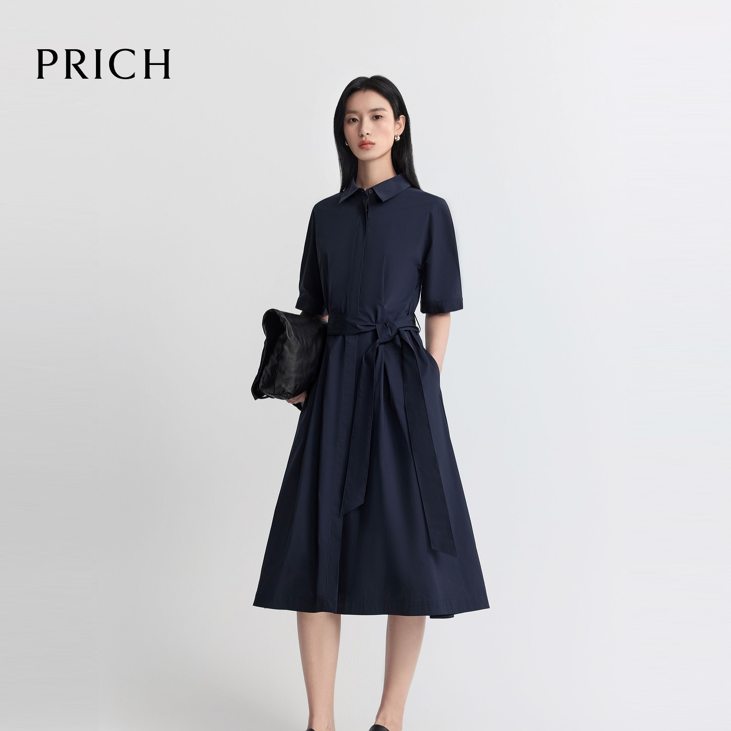 收腰连衣裙2026夏季 PRICH时尚 复古衬衫 式 A摆气质通勤长裙女 新款