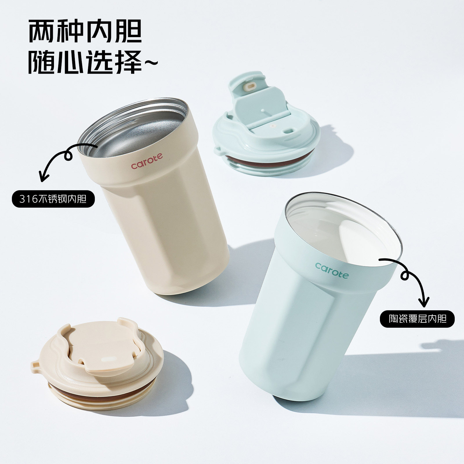 卡罗特保温杯陶瓷覆层内胆咖啡杯随行吸管水杯女不锈钢保冷杯子男