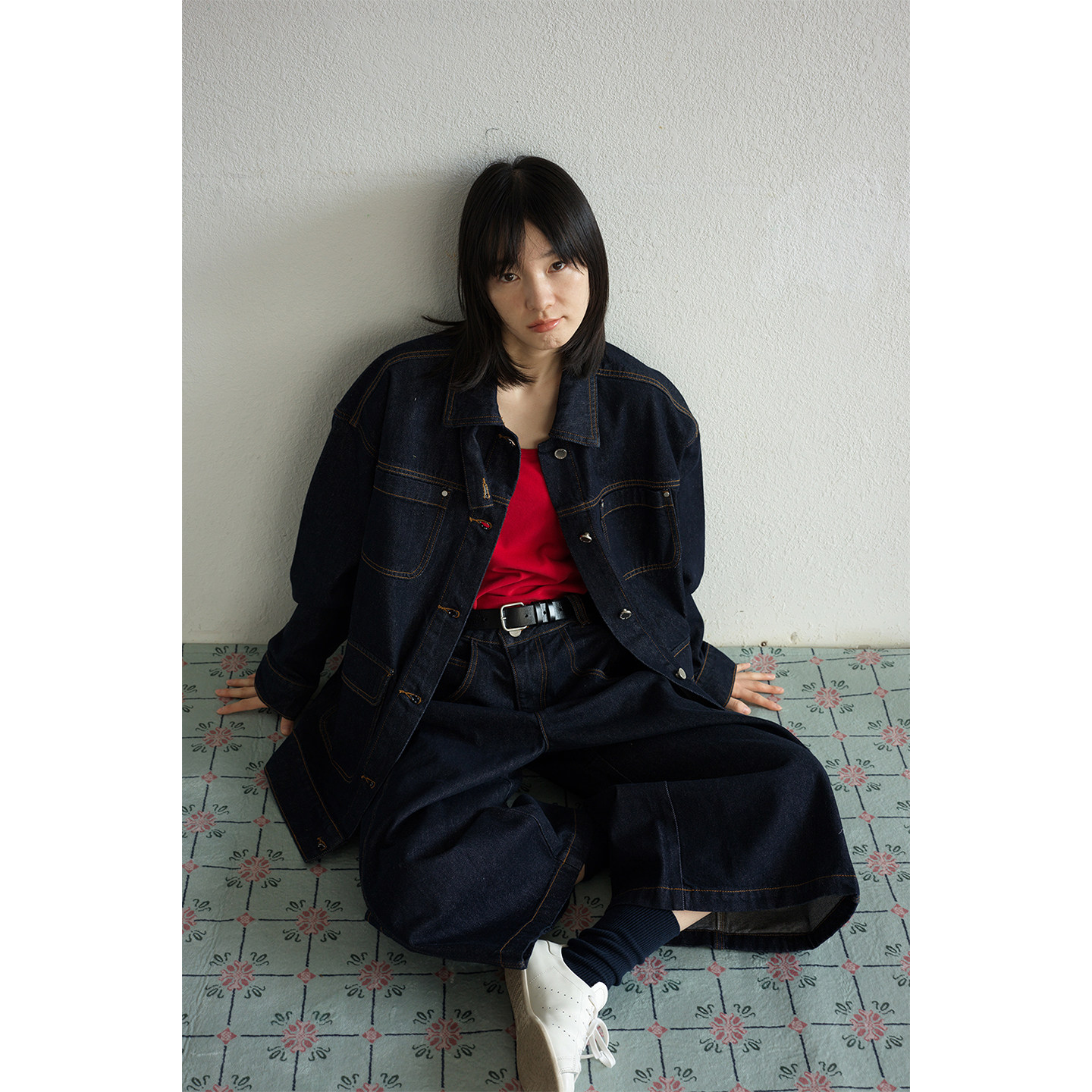 鹿与飞鸟「蓝朋友」日系巴恩风两穿领廓形中长款 牛仔外套7382 工装